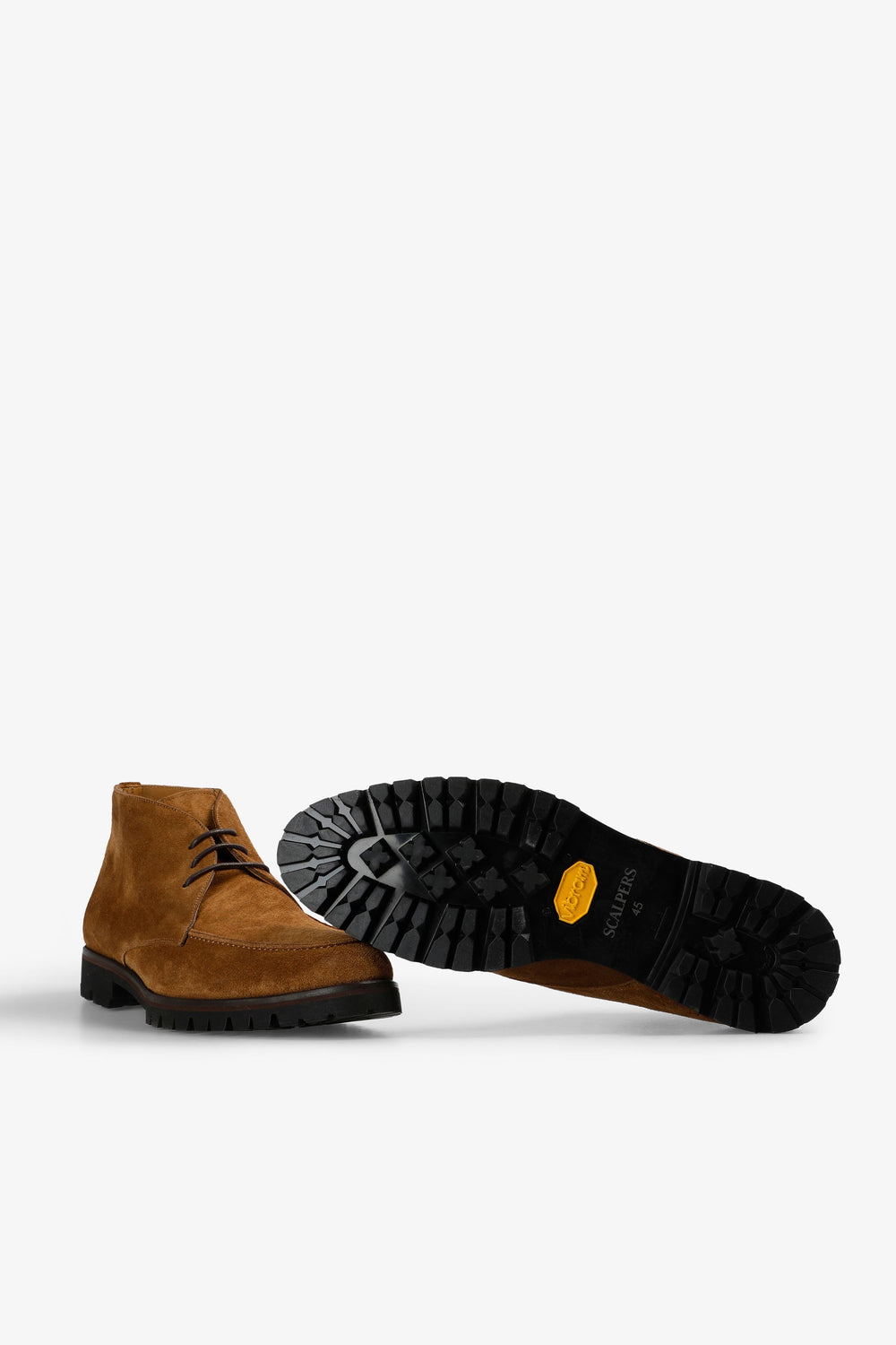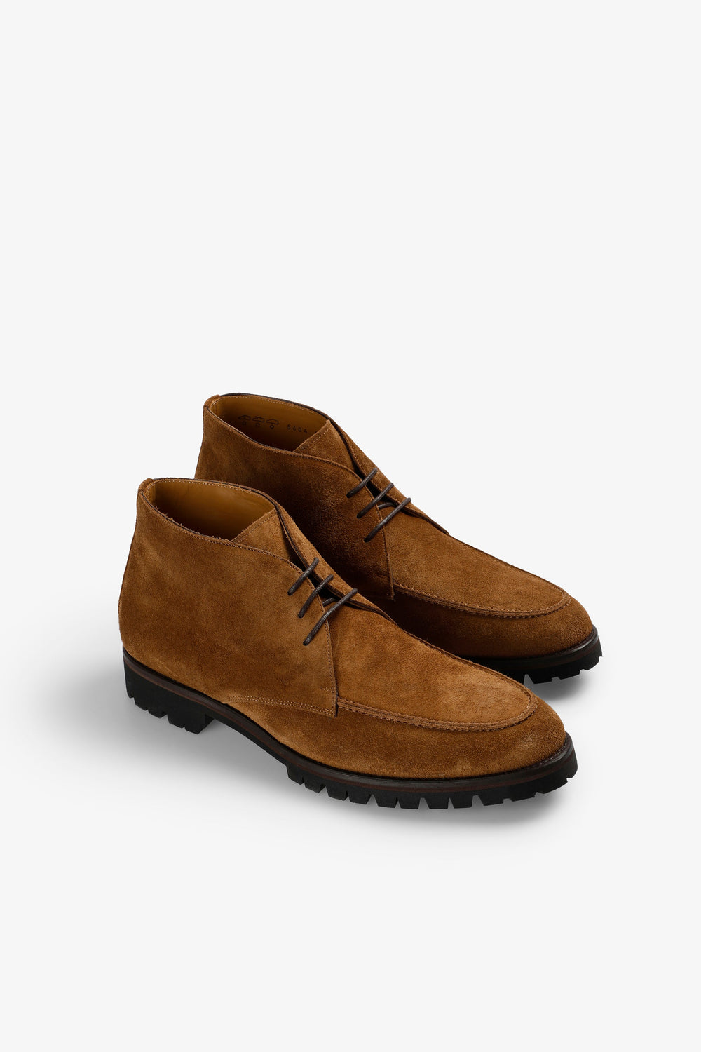 Botins confecionados em 100% pele de camurça. Fecho com cordões. Sola Vibram® de alto desempenho. Fabricado em Espanha.