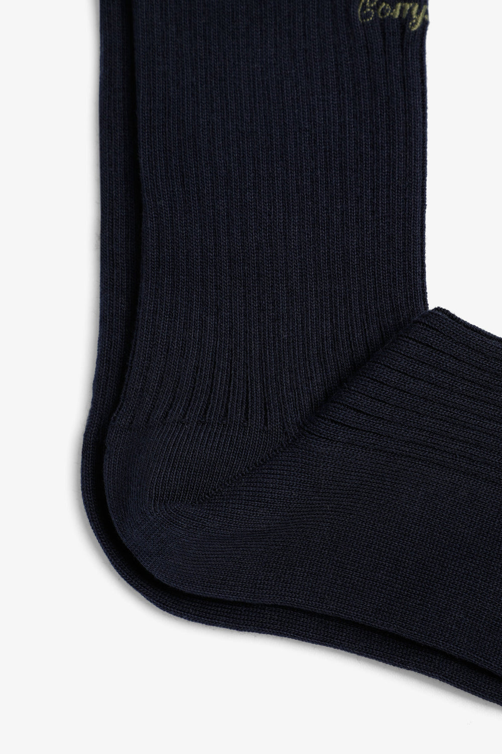 Meias de cano médio confecionadas em algodão orgânico. Pormenor de logótipo bordado em contraste na parte superior.