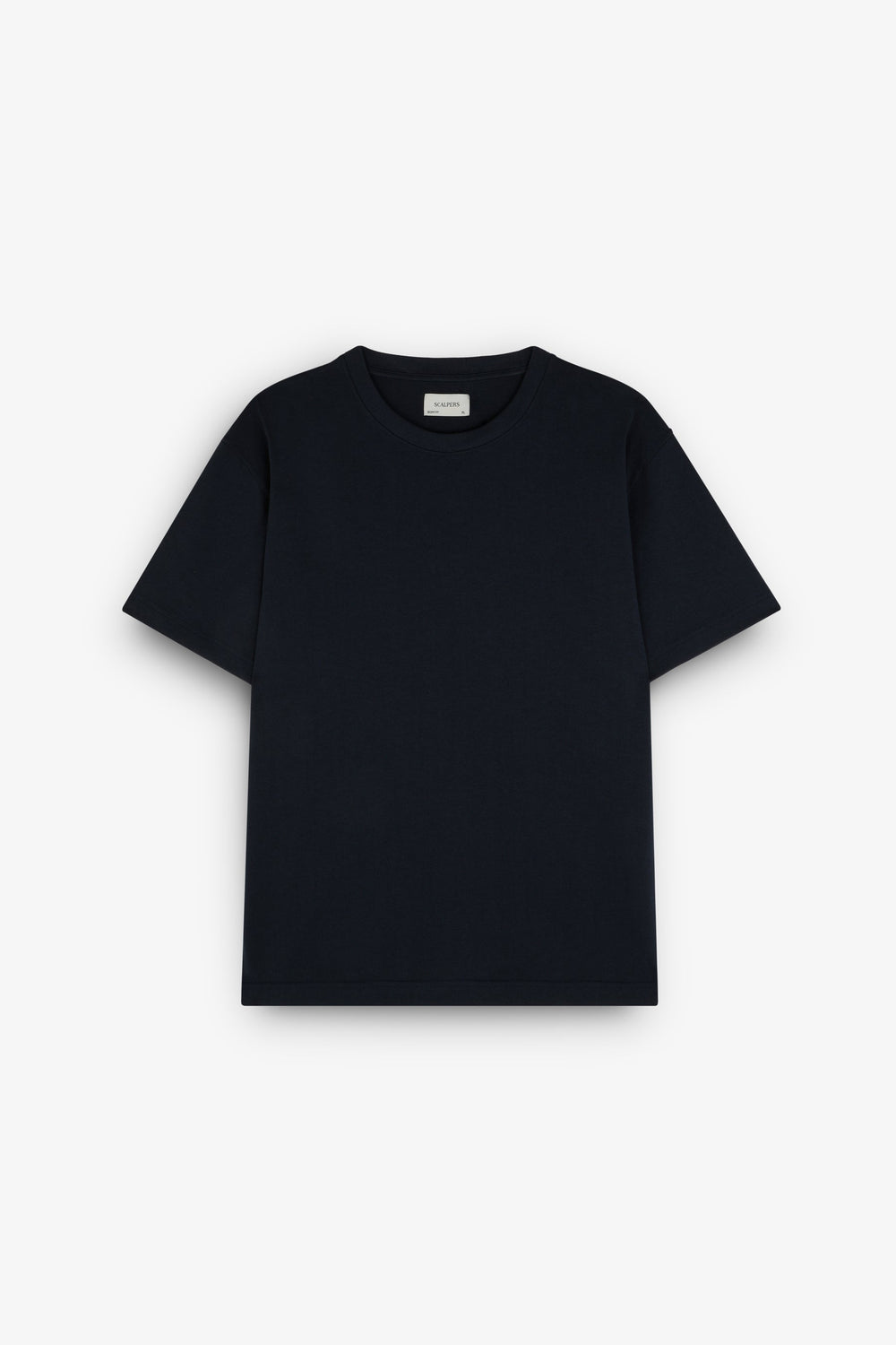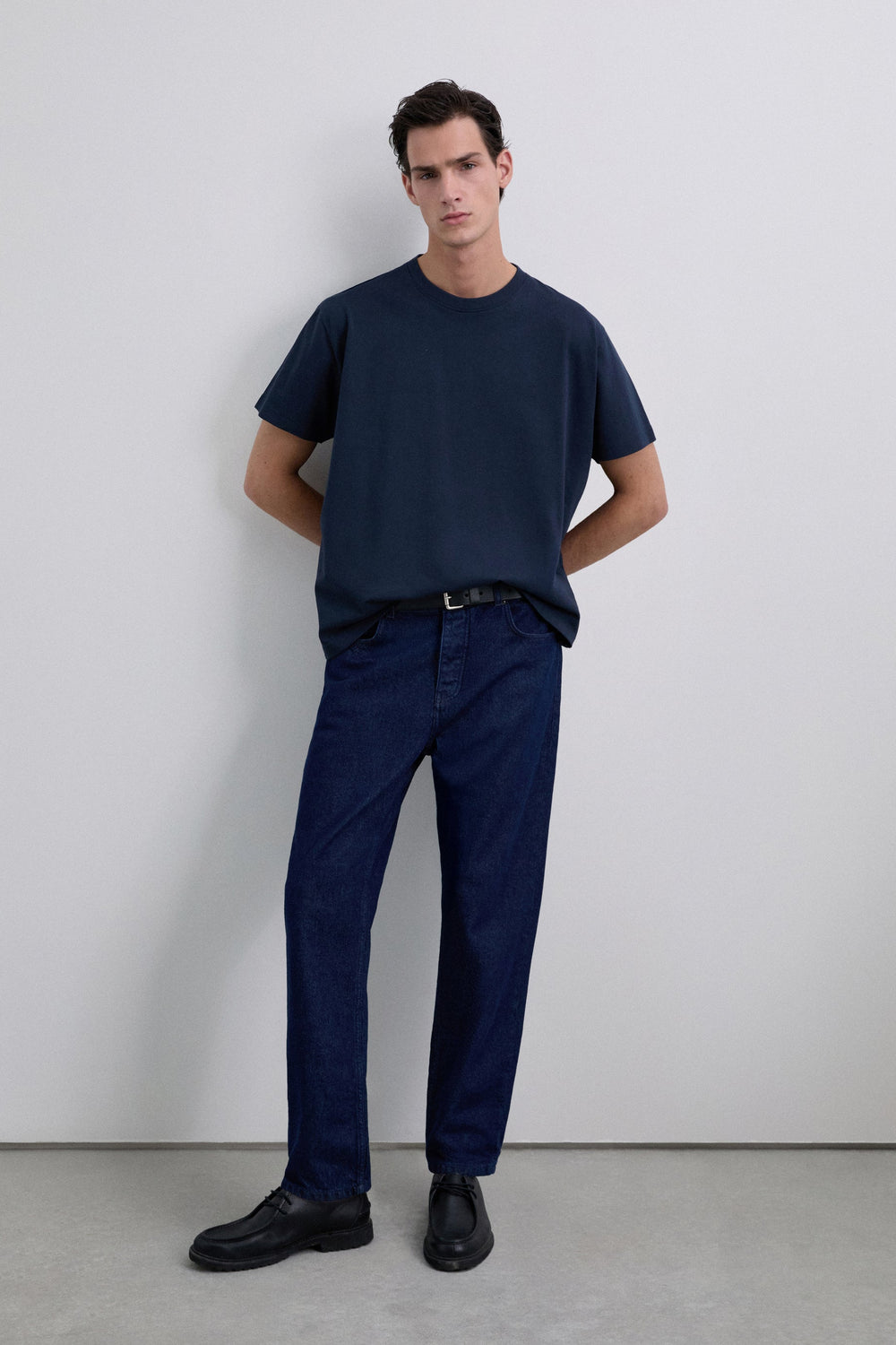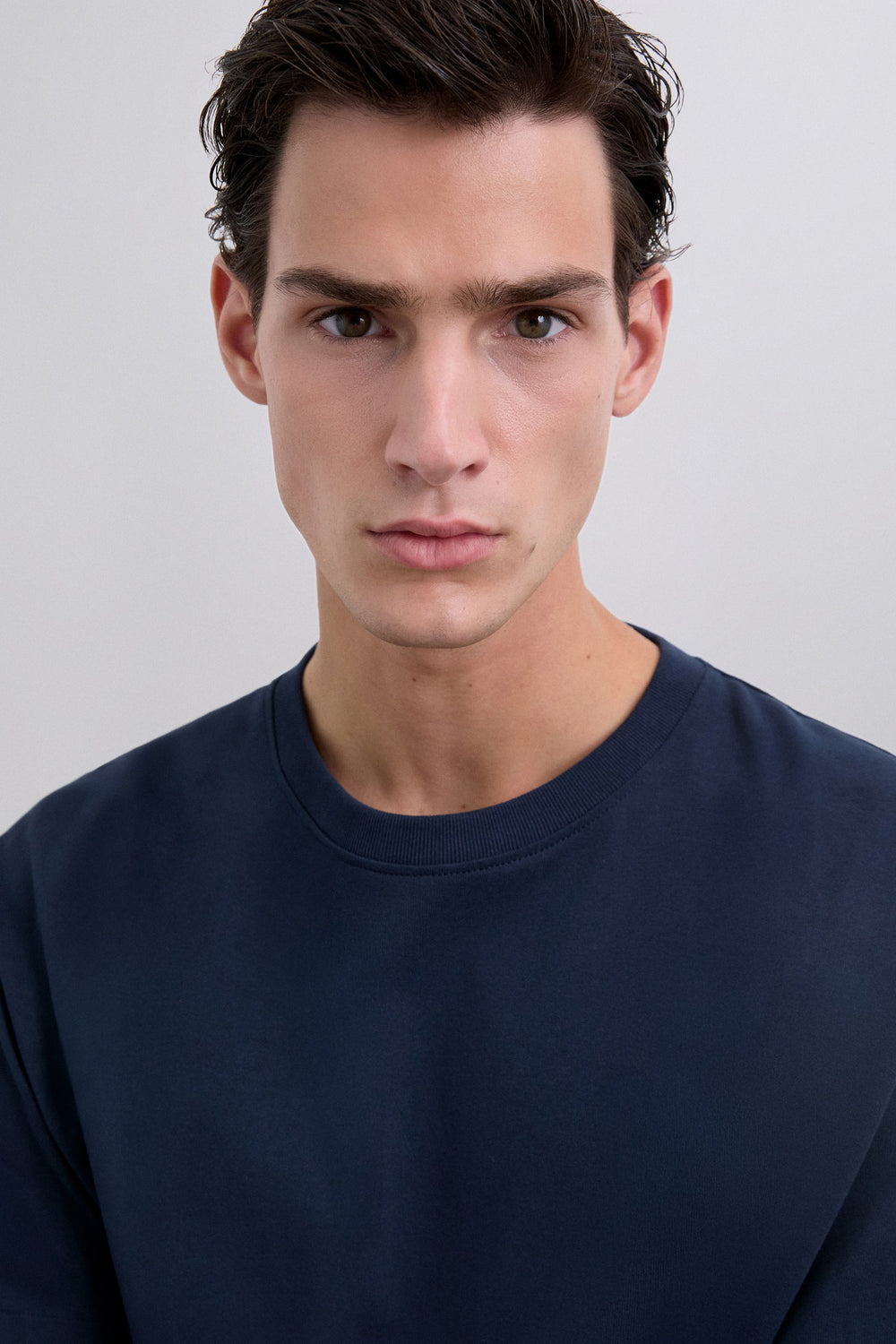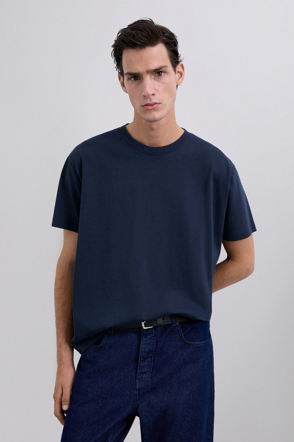 T-shirt confecionada em 100% algodão orgânico. Manga curta. Decote redondo. Boxy fit. Acabamentos em nervuras.