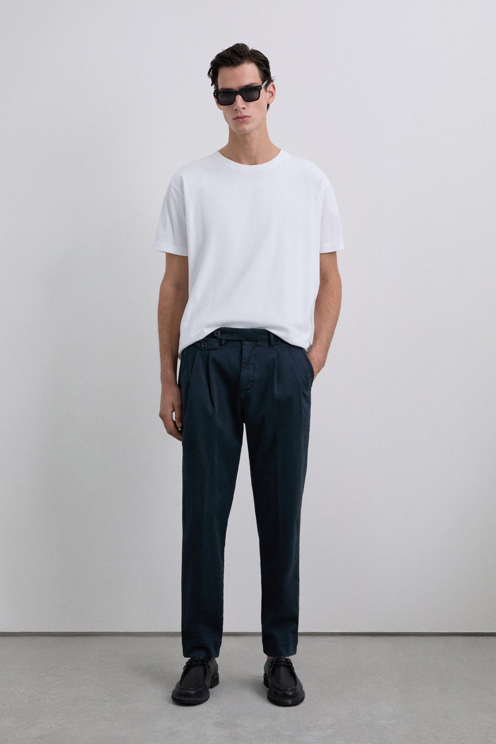 T-shirt confecionada em 100% algodão orgânico. Manga curta. Decote redondo. Boxy fit. Acabamentos em nervuras.