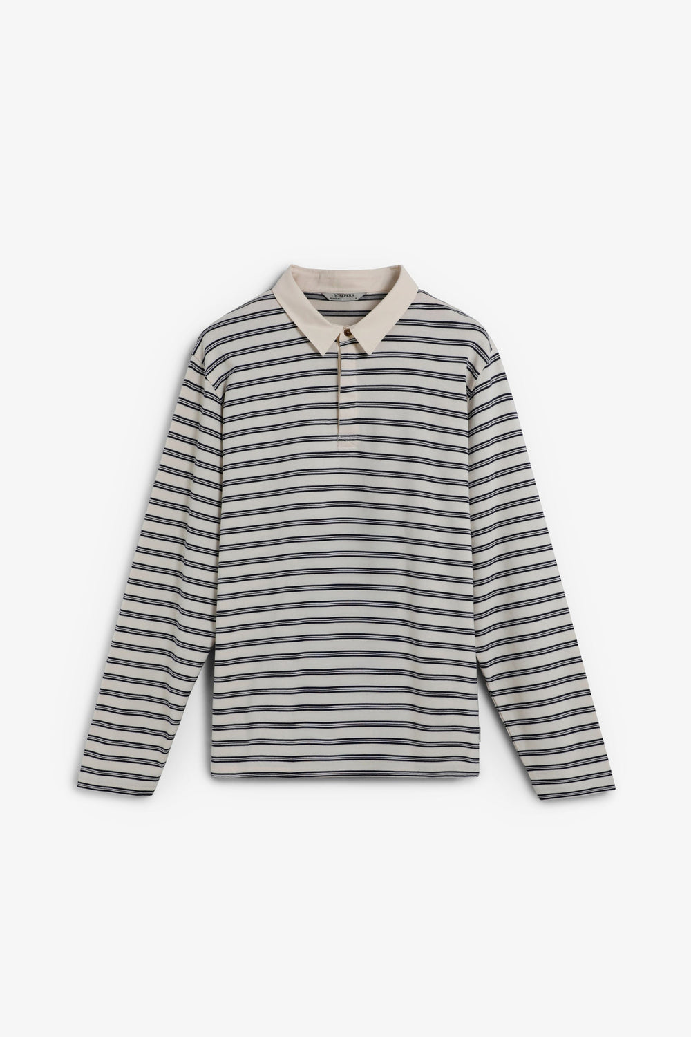 Camisa polo confecionada em tecido de malha 100% algodão BCI. Relaxed fit. Manga comprida. Gola de sarja em contraste. Fecho de quatro botões com placket oculta.