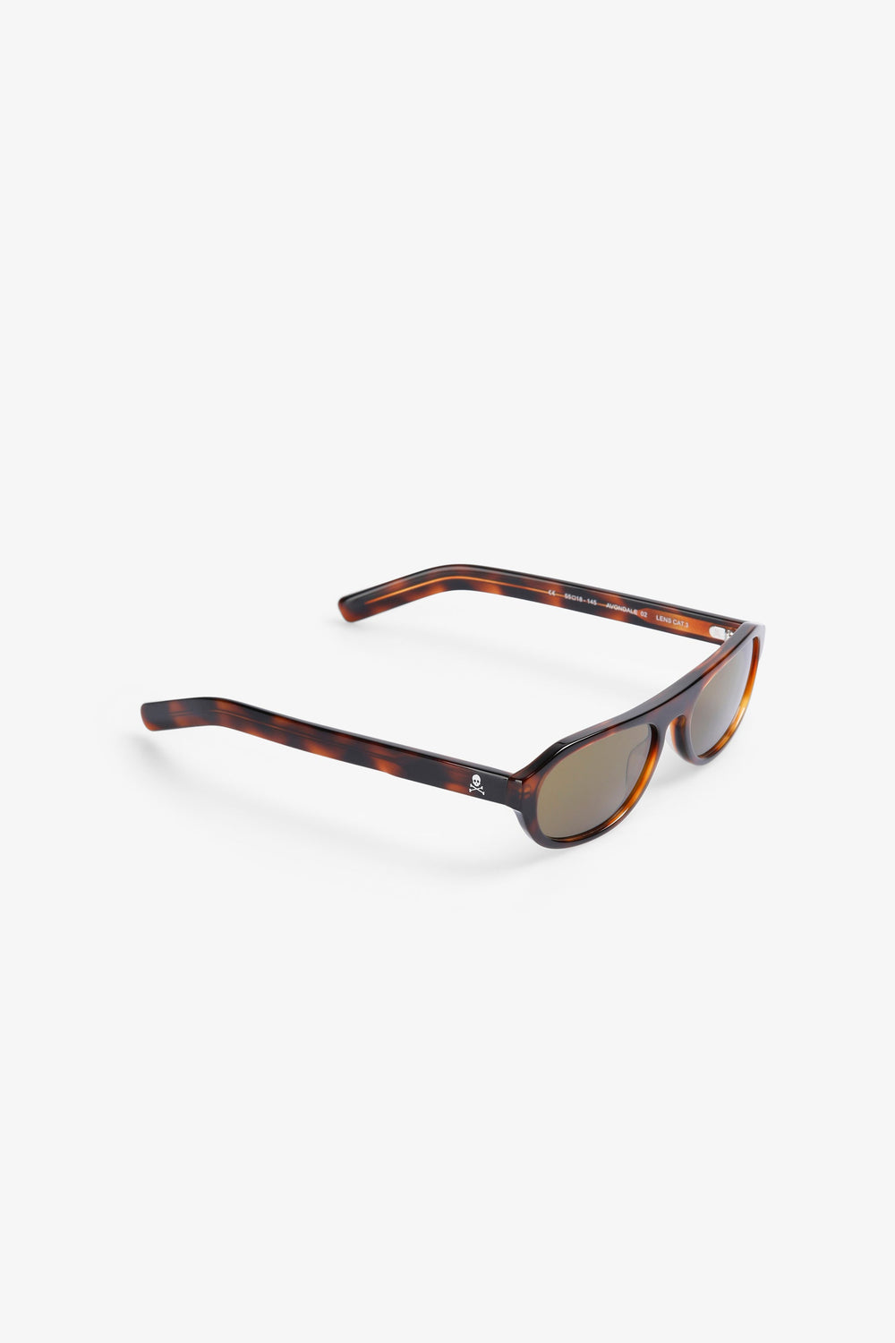 Óculos com armação de massa com padrão tartaruga. Lentes com filtro de proteção UV. Pormenor de logótipo nas laterais. Inclui uma capa de proteção.