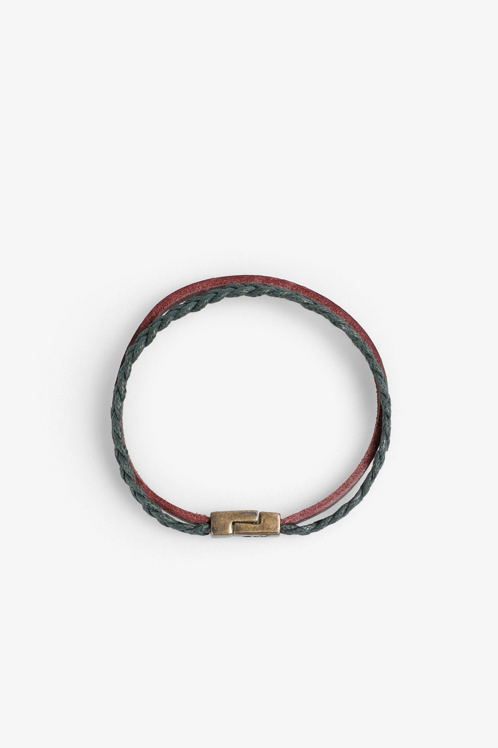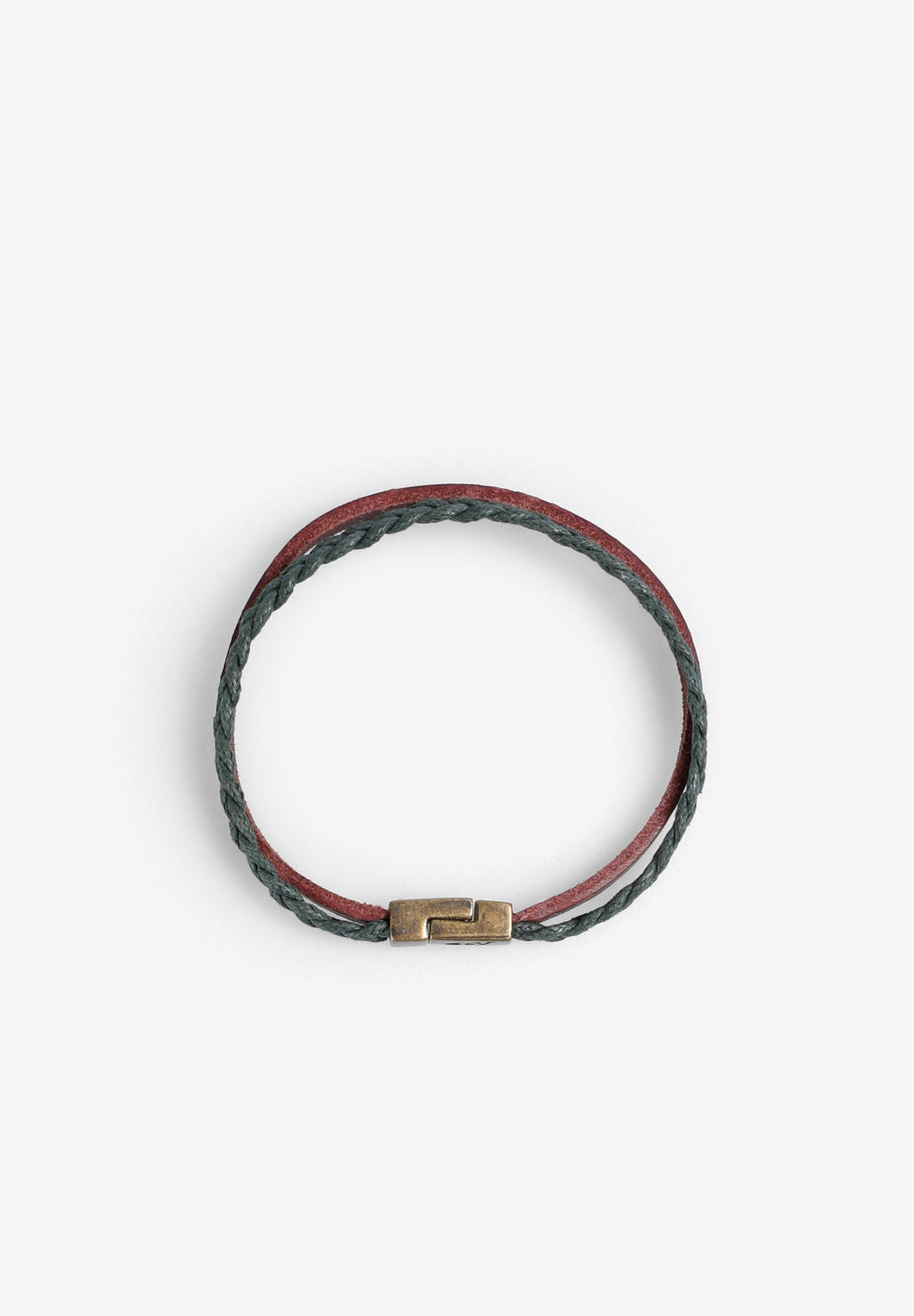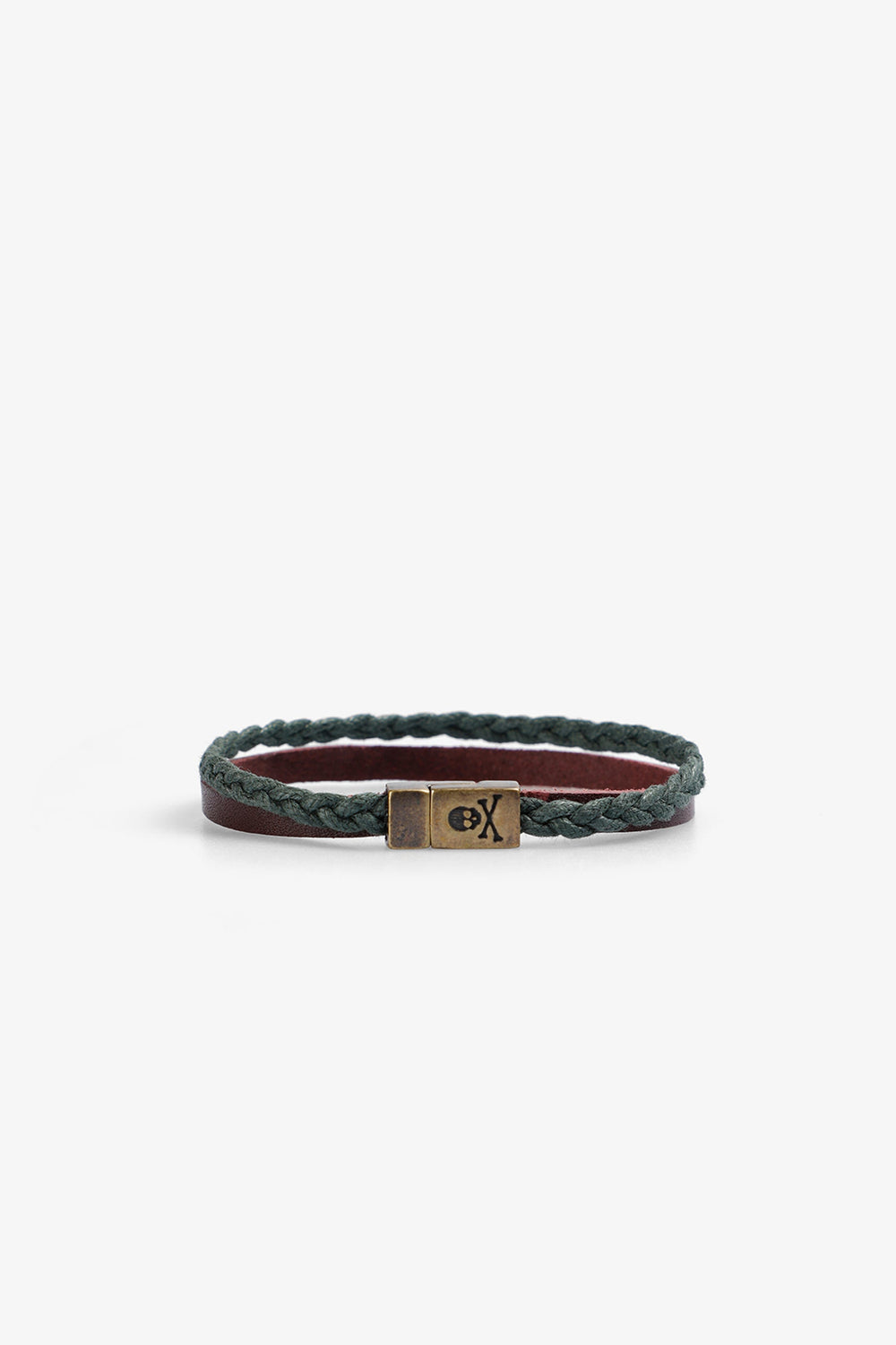Pulseira de pele confecionada em 100% pele e algodão. Pormenor metálico, skull gravada e fecho de pressão.