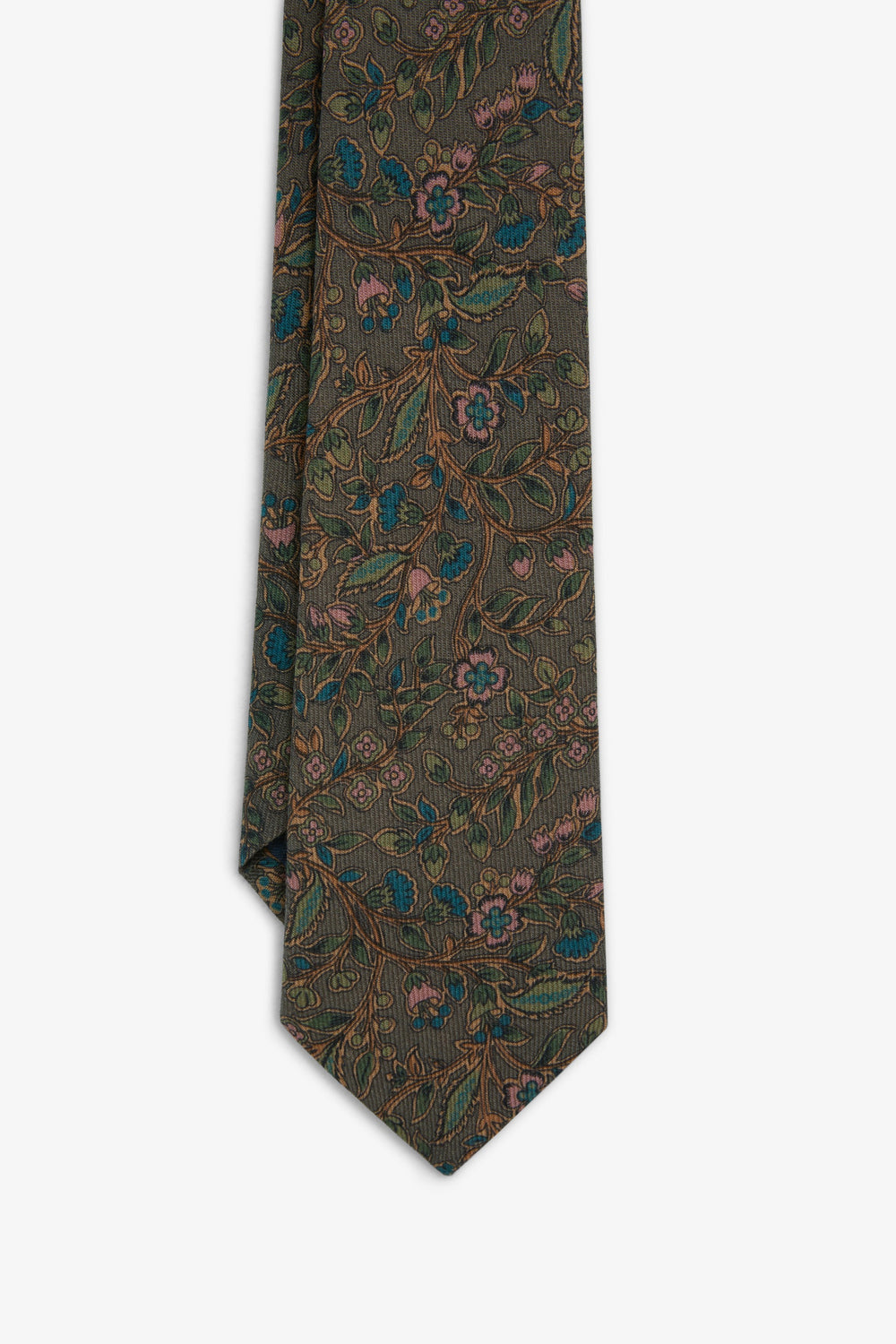 Gravata 100% lã com estampado floral e forrada, 7,5 cm de largura.