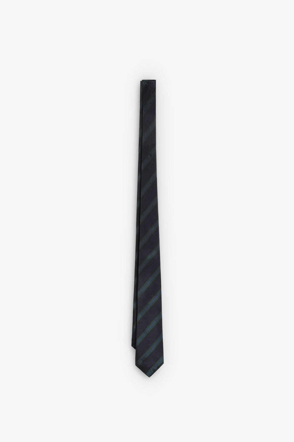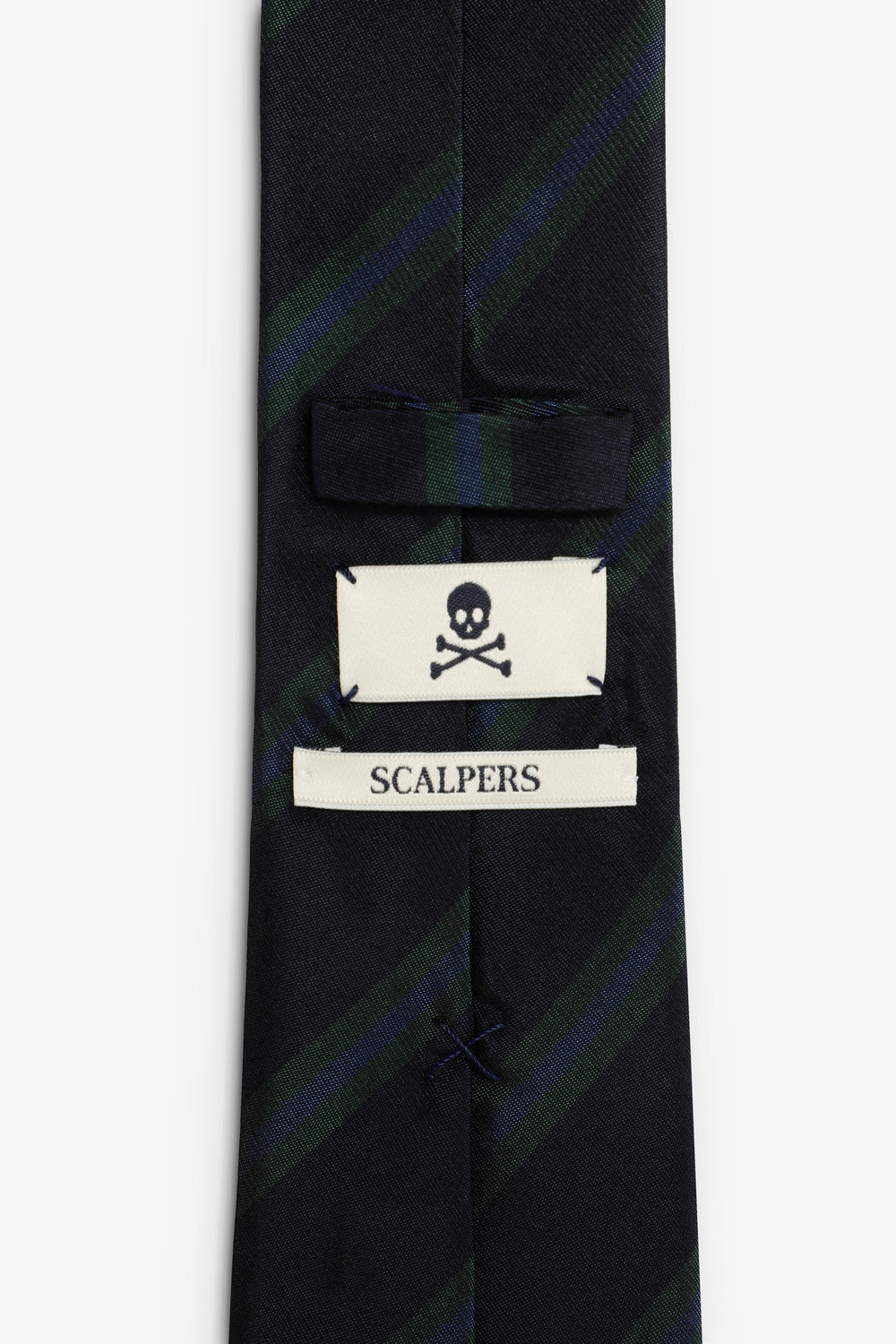 Gravata às riscas confecionada em 100% seda. Pala com 7,5 cm de largura.