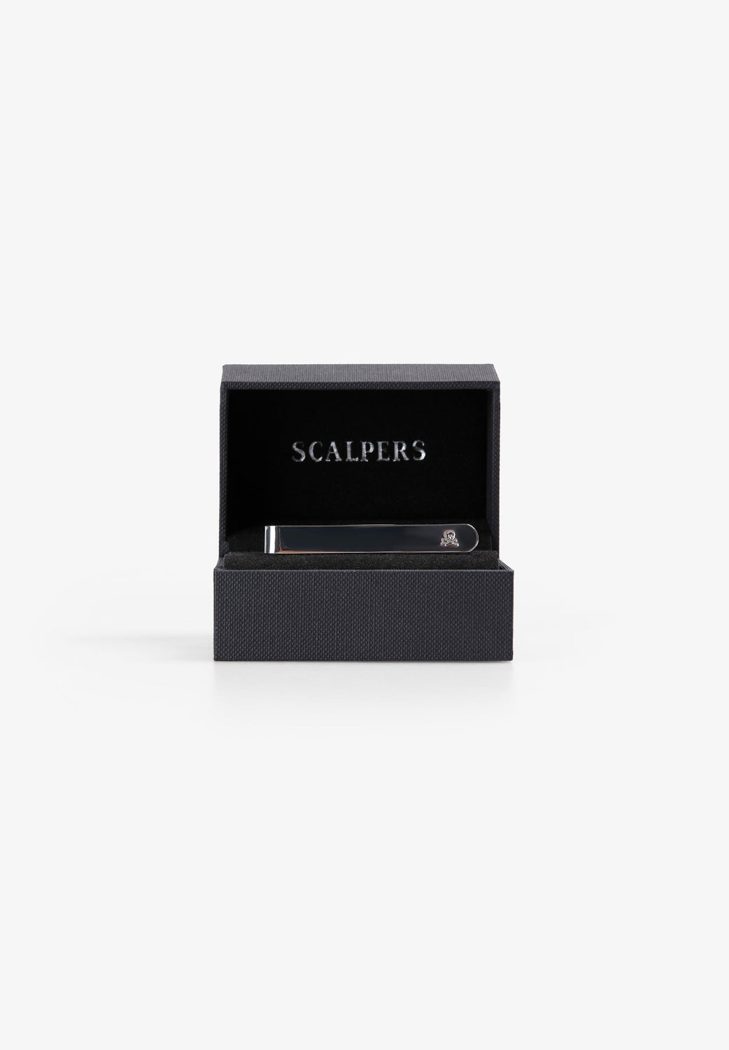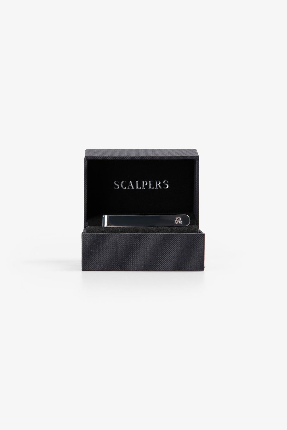 Clipe de gravata metálico confecionado em latão. Logótipo à frente e atrás.