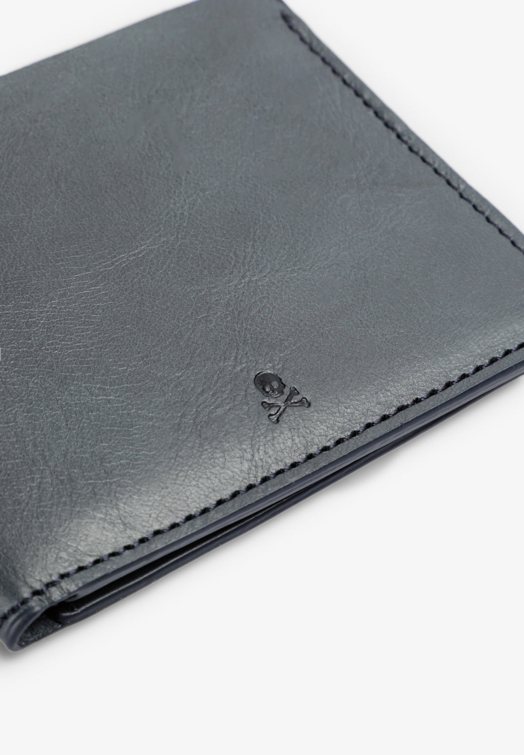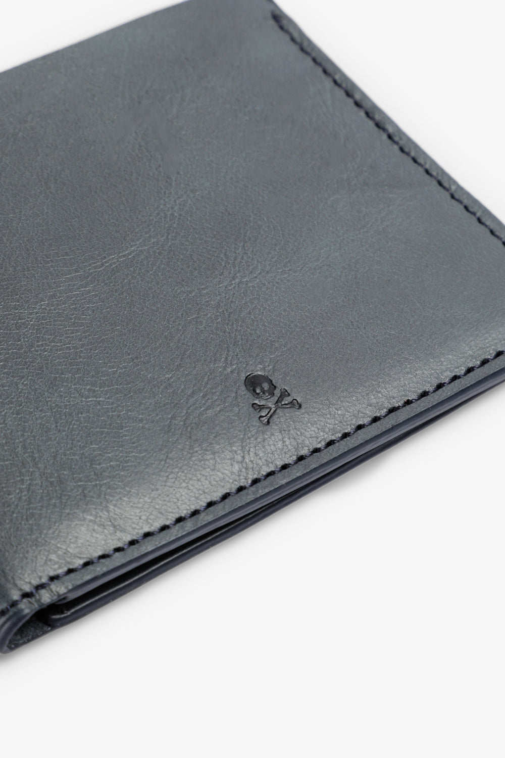 Carteira com skull e logótipo gravados. Confecionada em 100% pele. Ranhuras e compartimentos interiores.