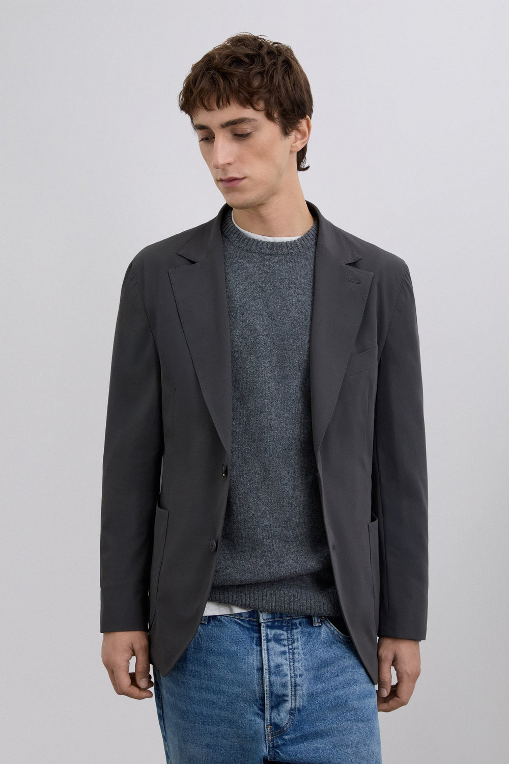 Blazer slim fit confecionado com tecidos da casa italiana TG di Fabio. Gola com lapela entalhada. Manga comprida acabada em punho com pormenor de botões. Bolso de linhas vivas no peito e de aba na anca. Pormenor de bolso interior. Bainha com aberturas atrás. Fecho com botões à frente.