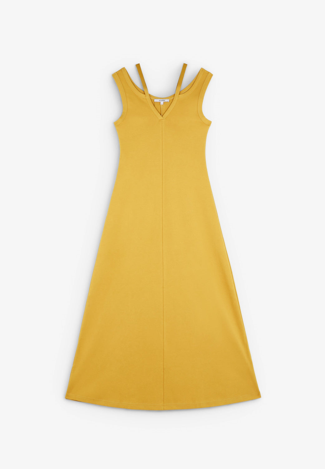 Vestido midi confecionado em 100% algodão orgânico BCI. Manga cava. Cut out nas alças. Decote com acabamento em V. Pormenor de aplique metálico nas costas.