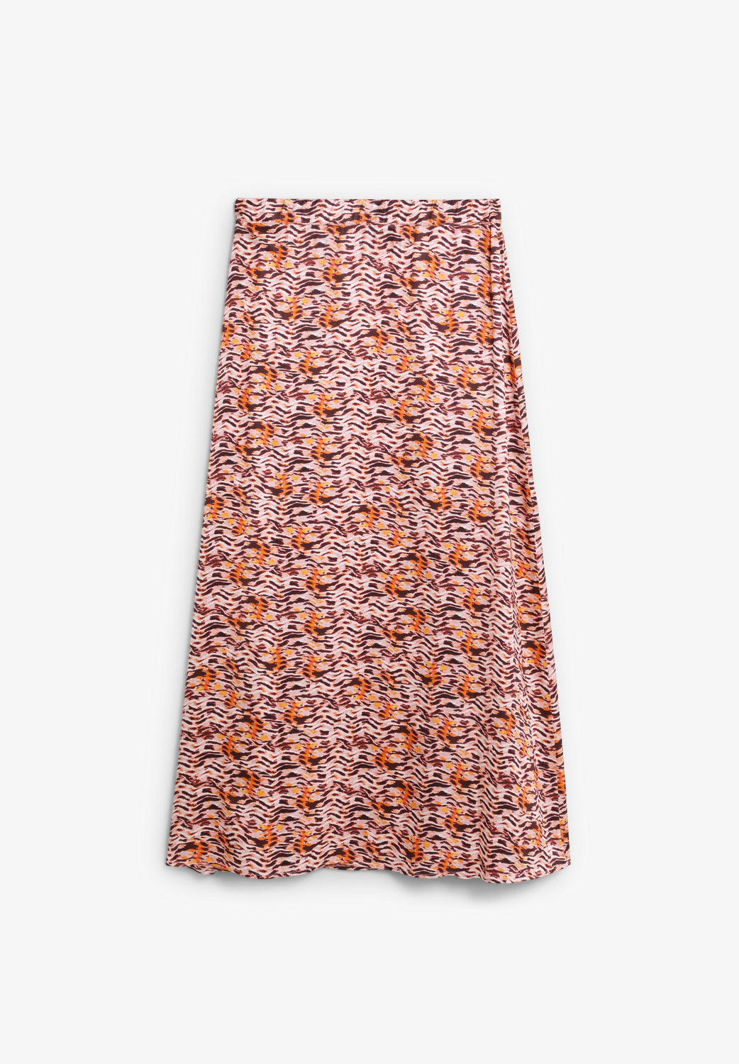 Saia midi em tecido de acabamento acetinado. Fecho com zip lateral.