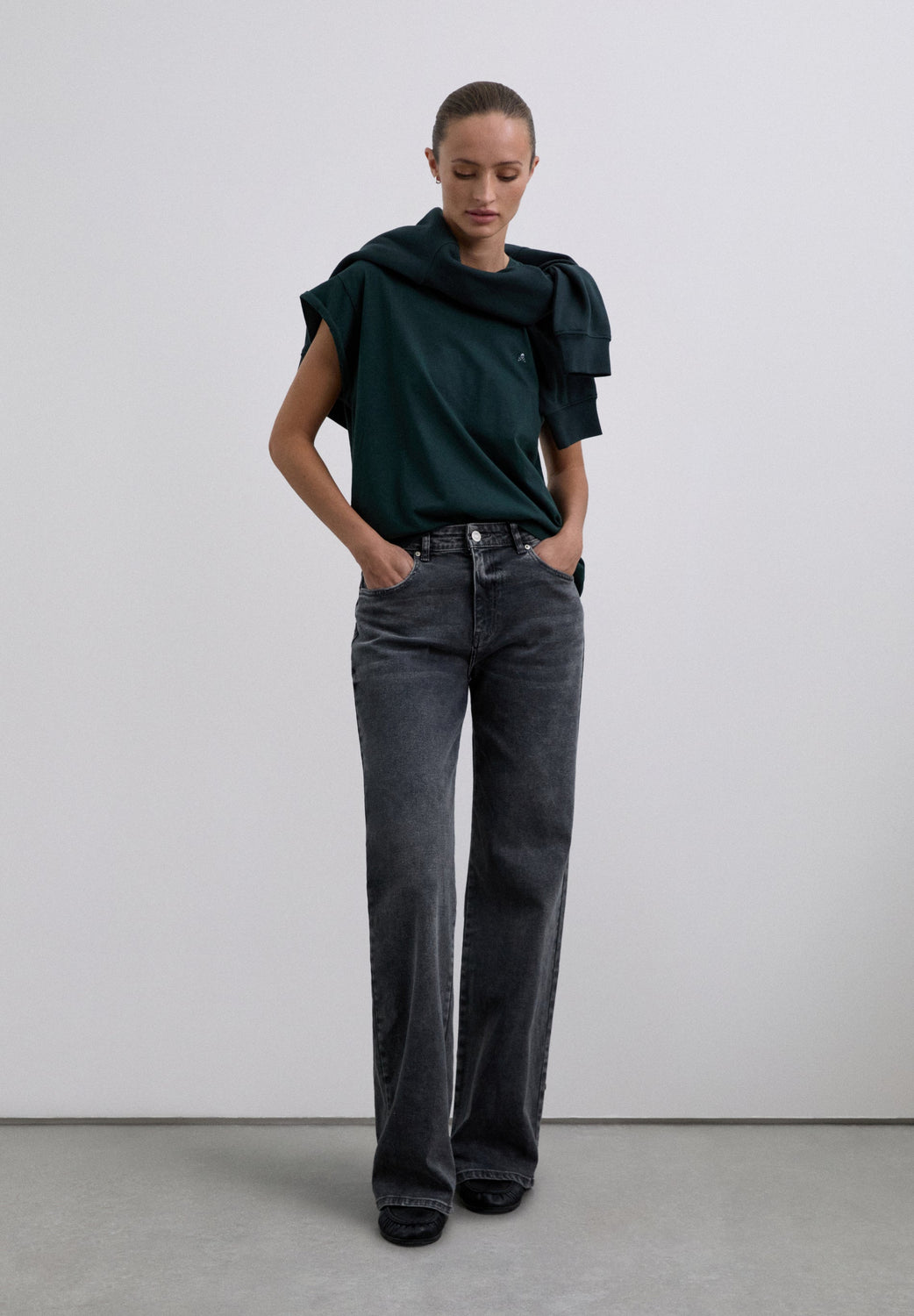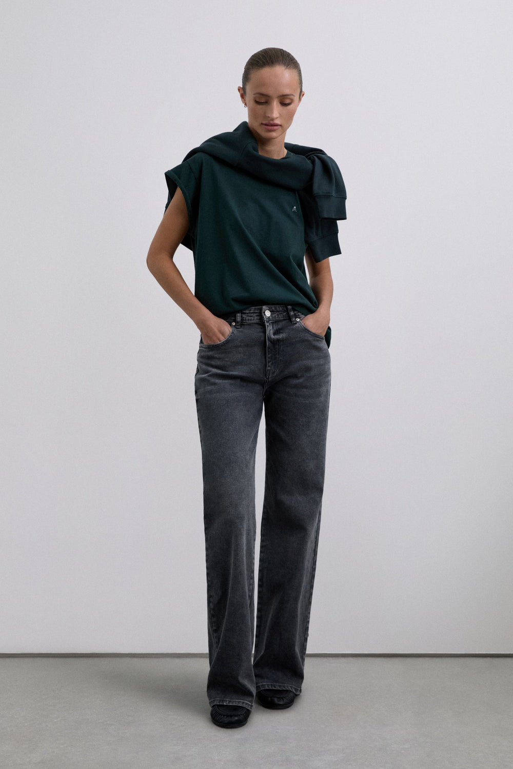 T-shirt confecionada em 100% algodão orgânico. Corte regular fit, decote redondo e manga cava. Pormenor de logótipo bordado no tom no peito.