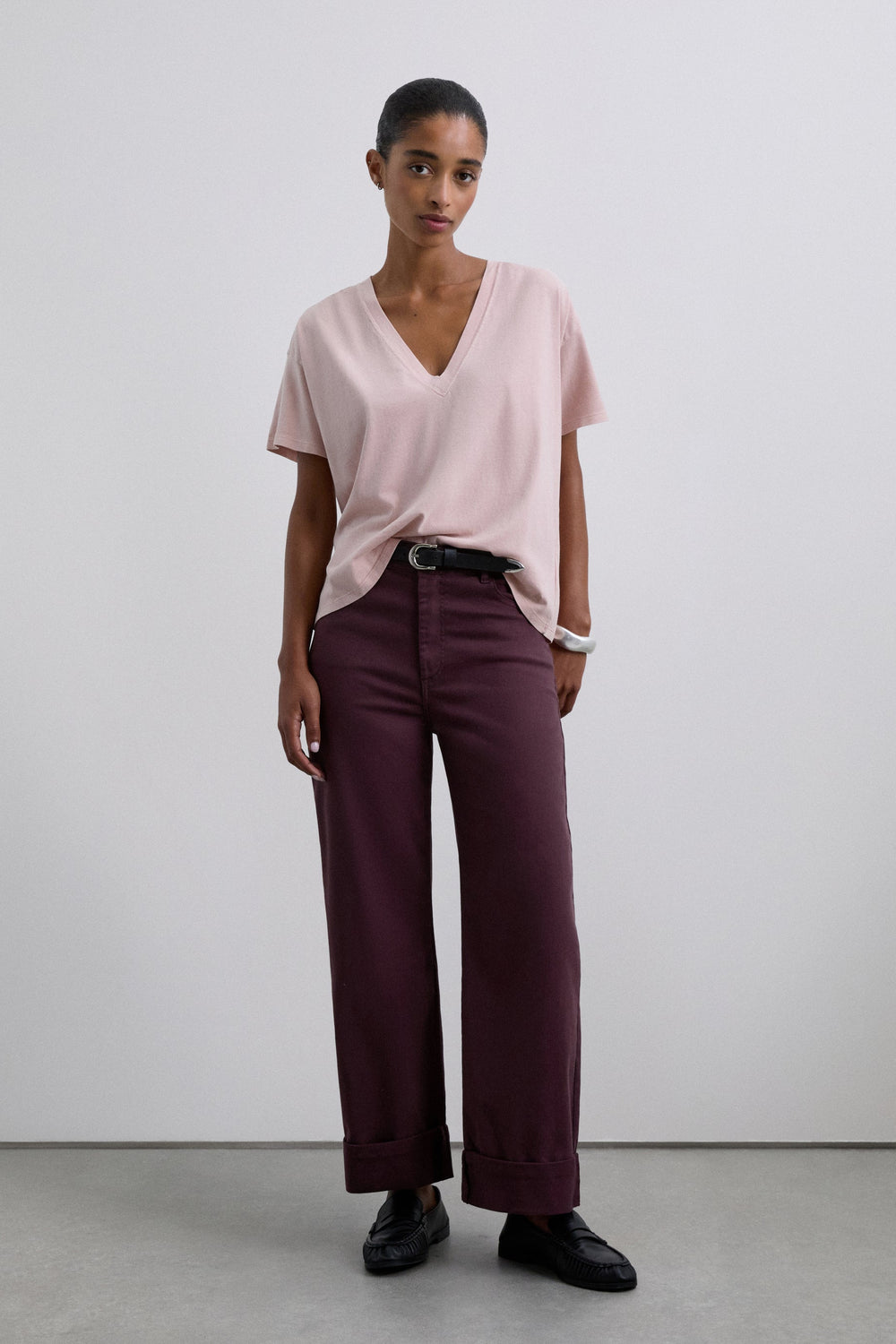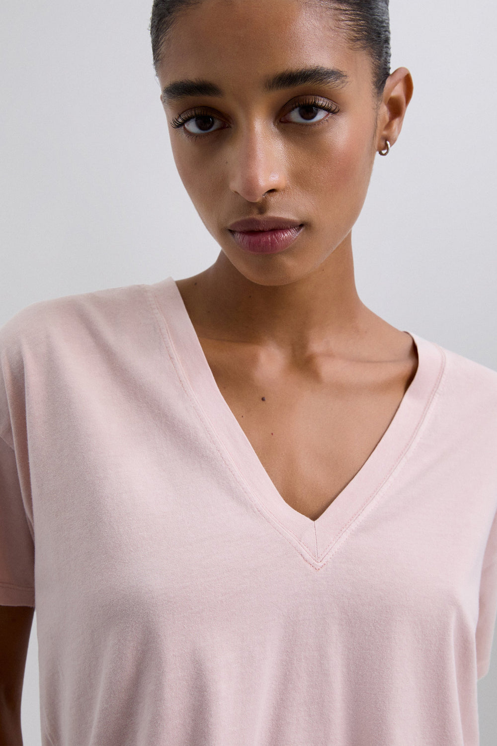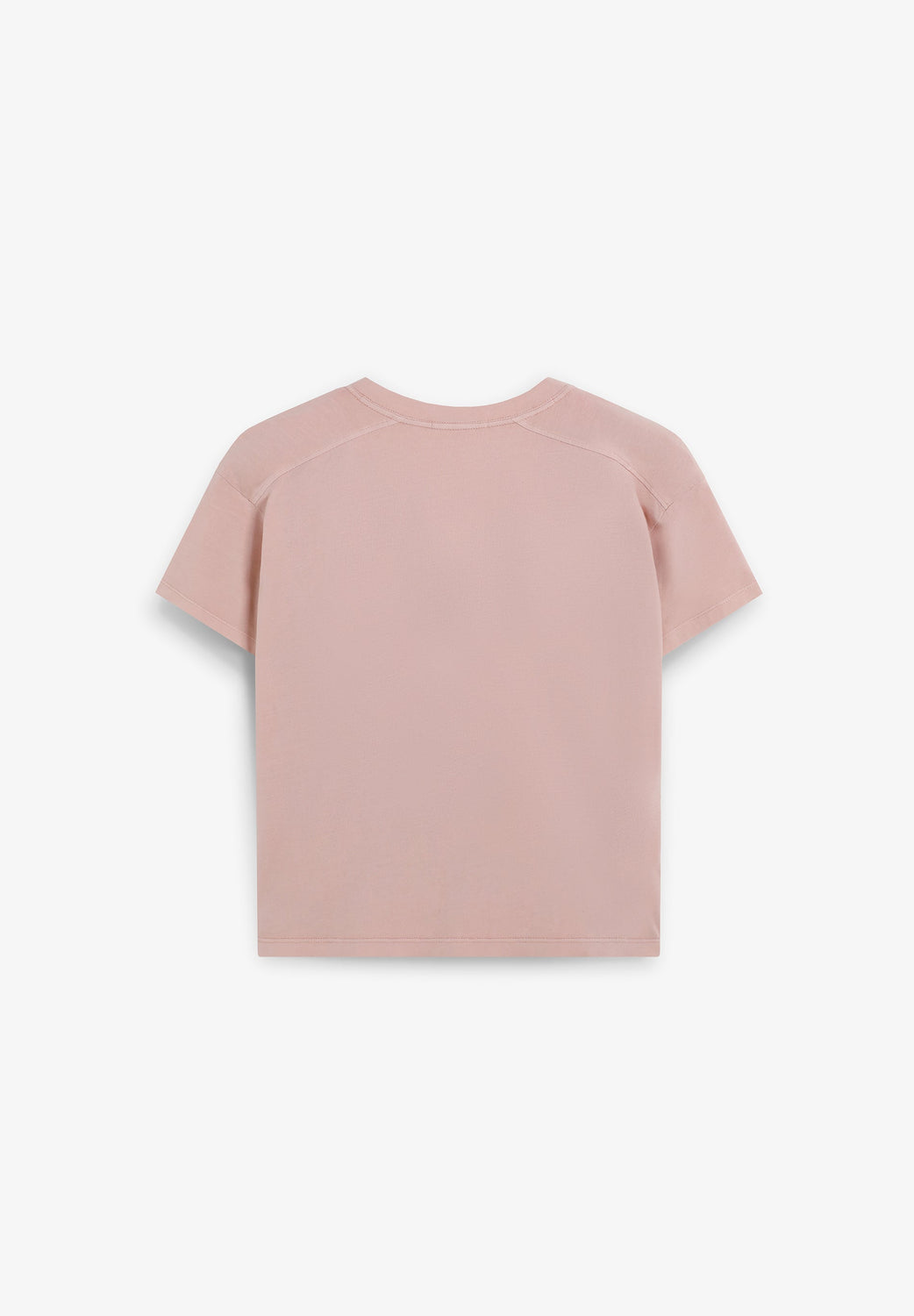 T-shirt básica confecionada em 100% algodão orgânico. Corte regular fit, decote em V e manga curta. Pormenor de logótipo bordado na parte inferior frontal.