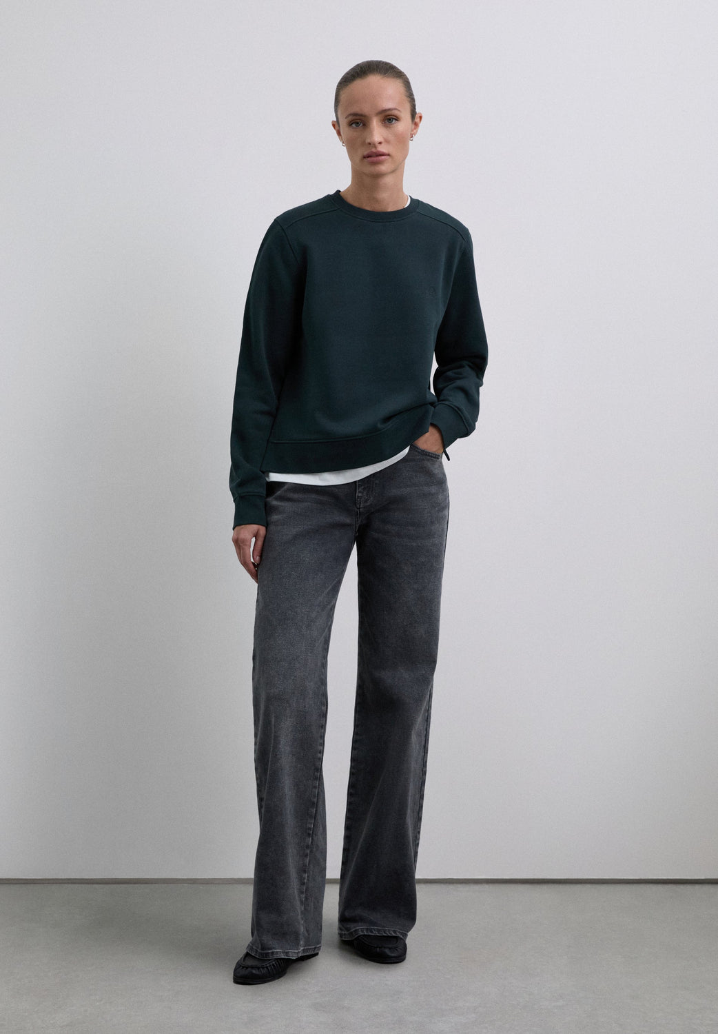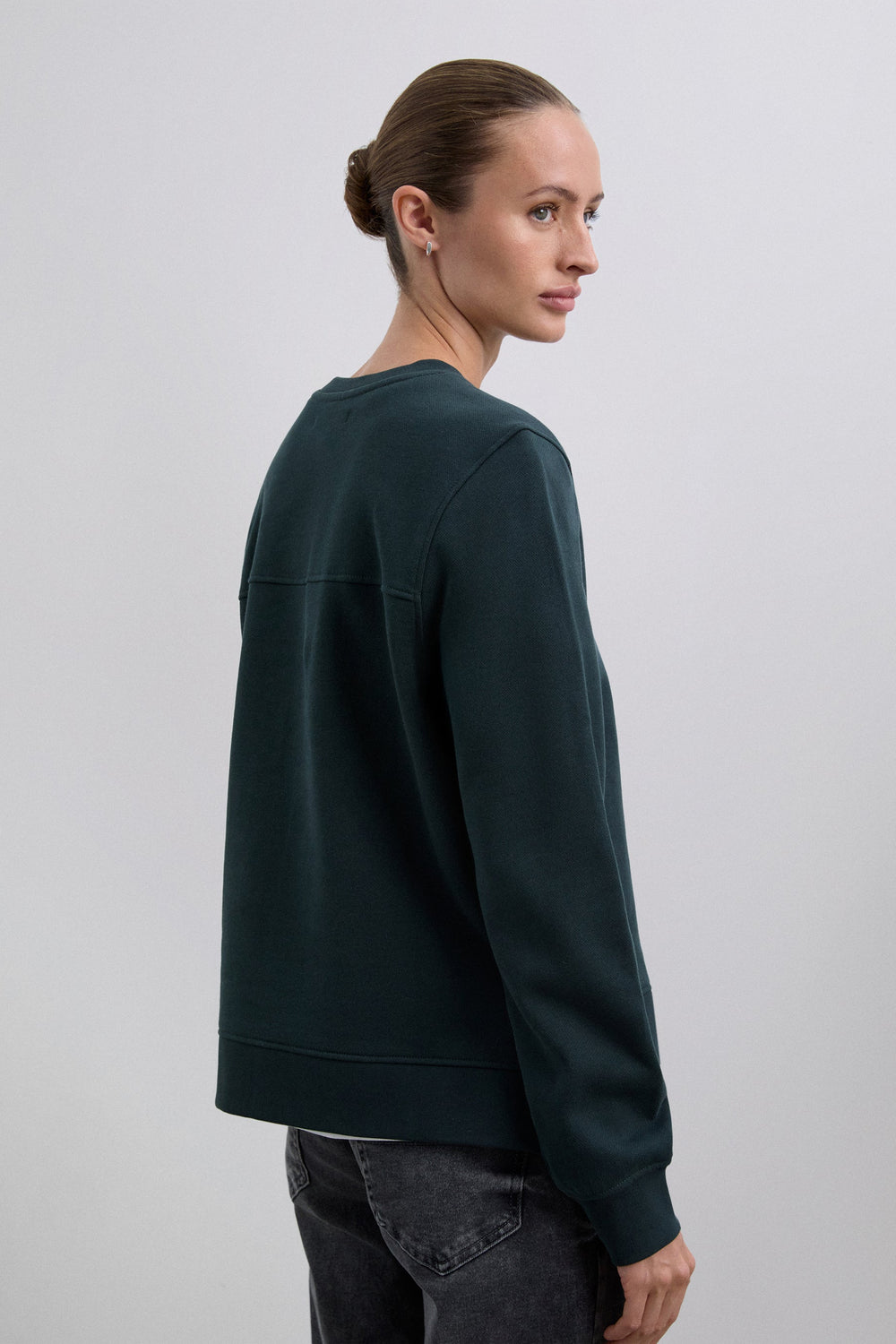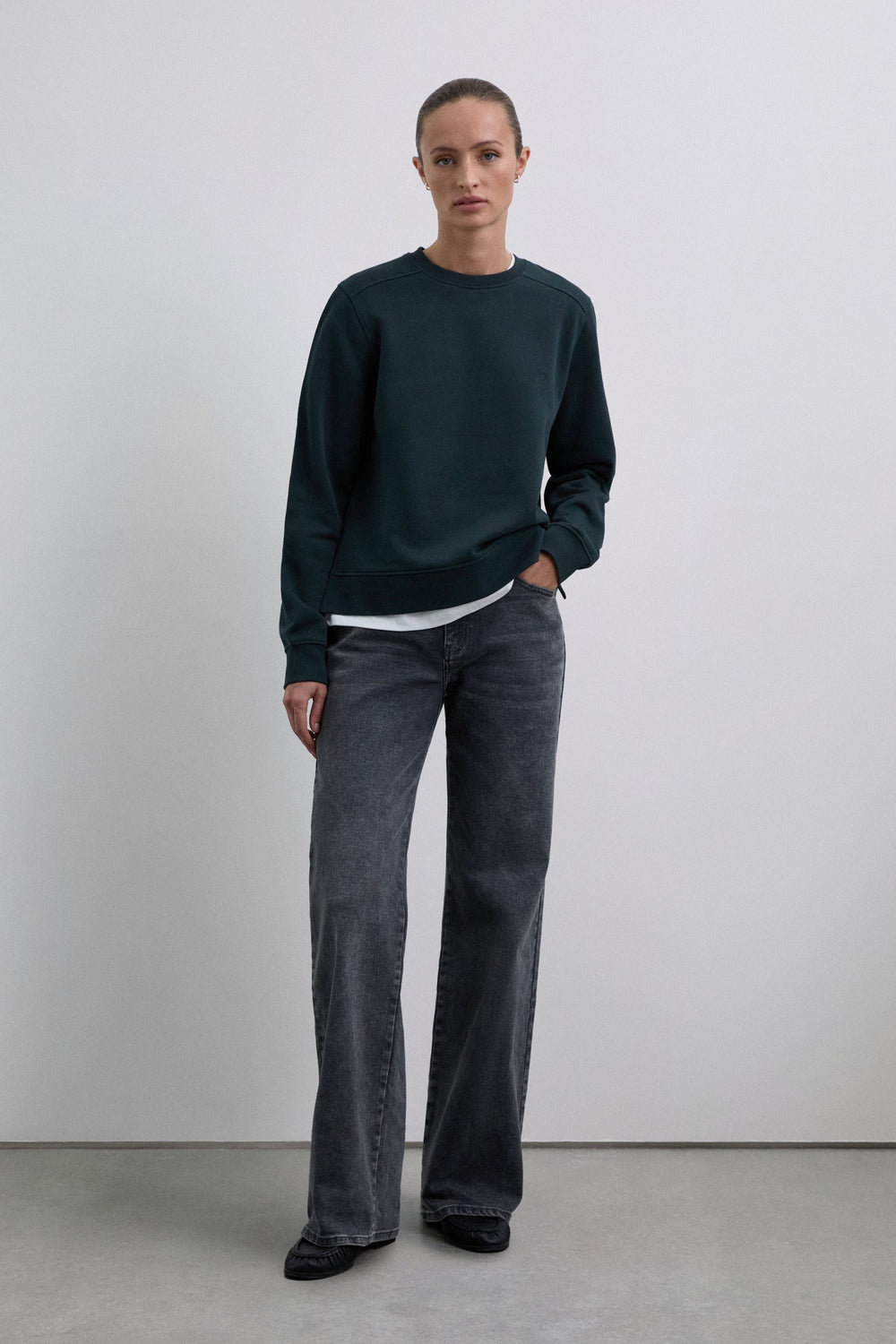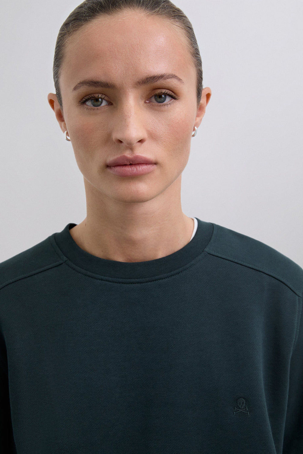 Sweatshirt confecionada em 100% algodão orgânico. Corte regular fit, decote redondo e manga comprida com punhos terminados em nervuras. Bainha assimétrica, parte traseira alongada. Pormenor de skull bordada no peito.