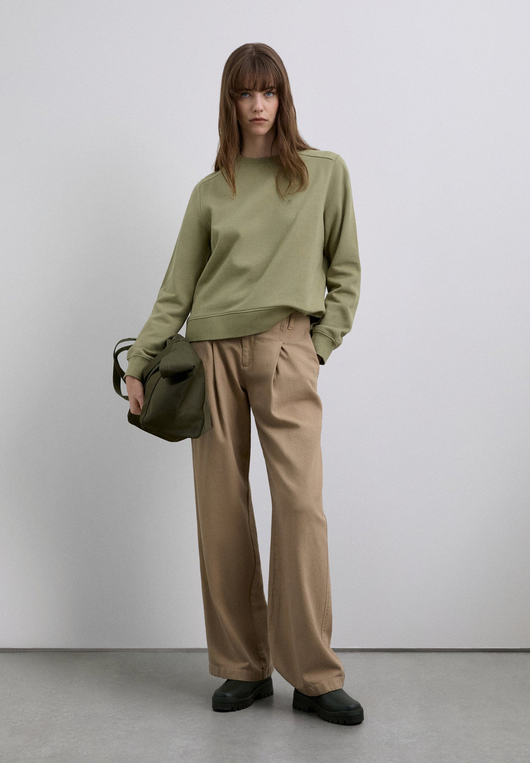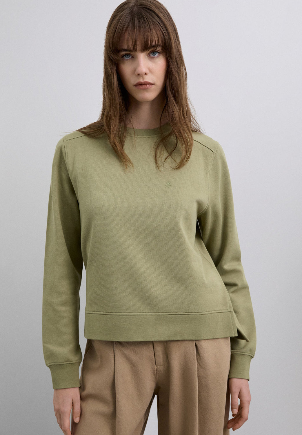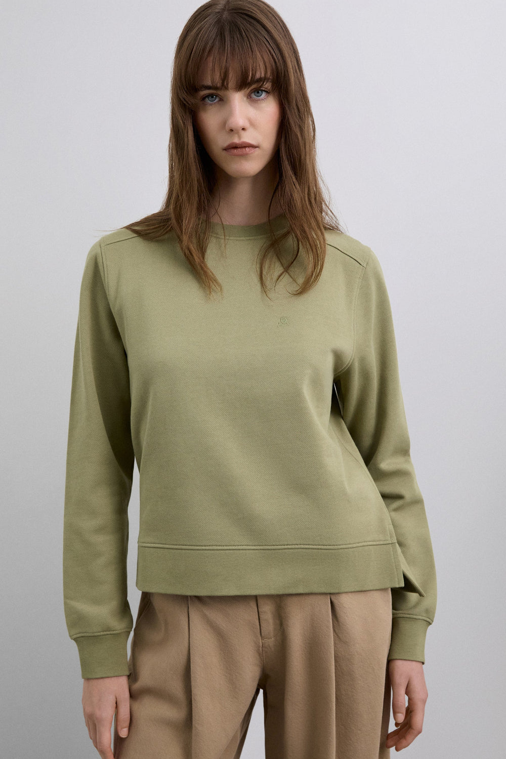 Sweatshirt confecionada em 100% algodão orgânico. Corte regular fit, decote redondo e manga comprida com punhos terminados em nervuras. Bainha assimétrica, parte traseira alongada. Pormenor de skull bordada no peito.