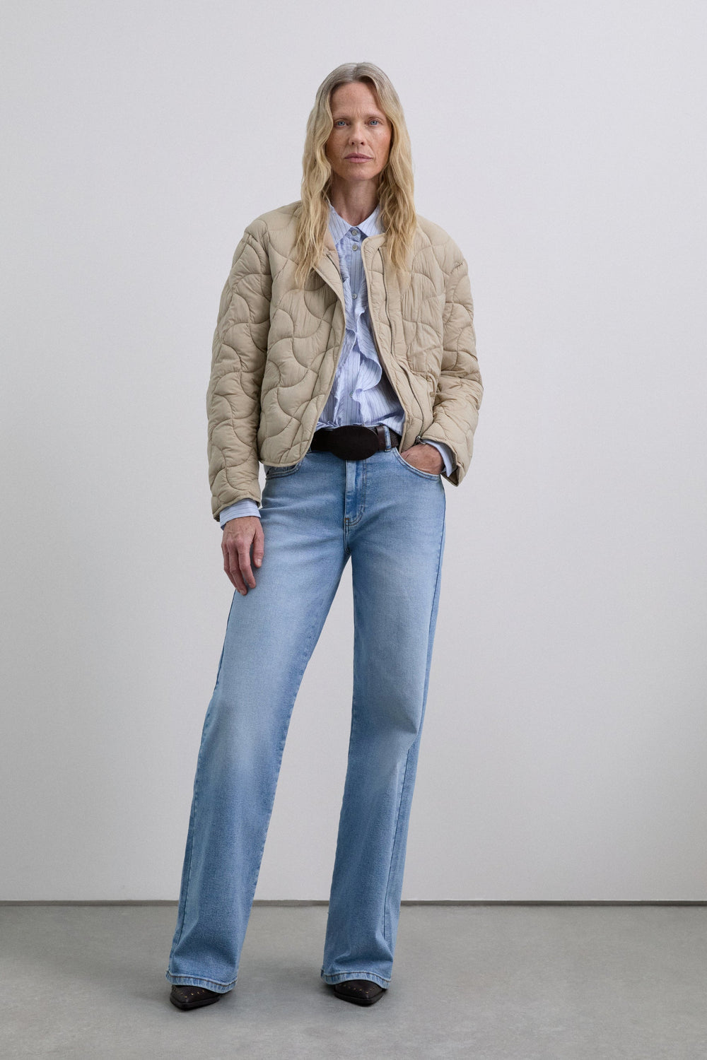 Cardigan acolchoado de corte regular. Decote redondo. Manga comprida. Fecho de botões de pressão e fecho de correr na parte frontal. Bainha arredondada. Pormenor de debrum à volta das mangas, dos bolsos e na bainha.