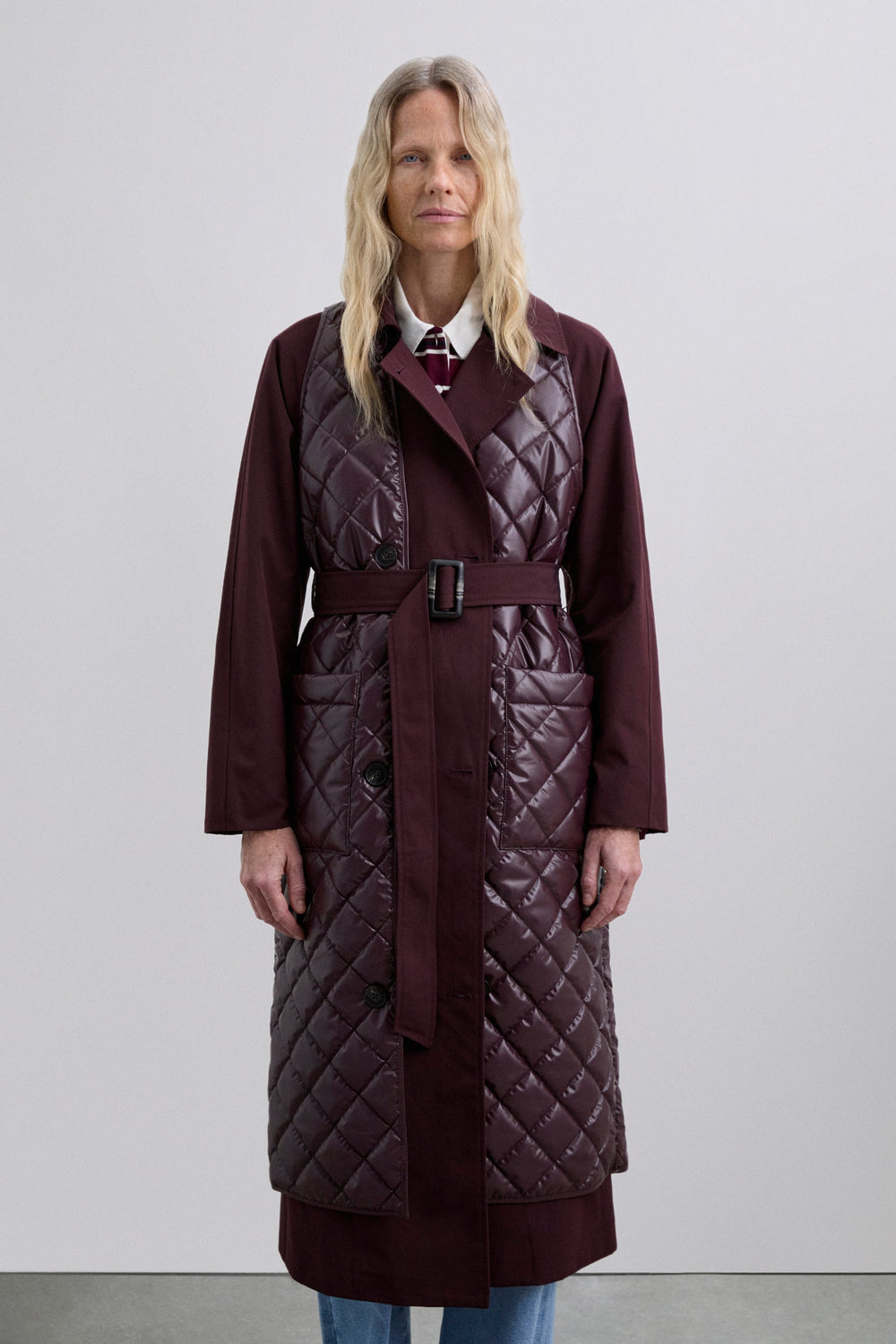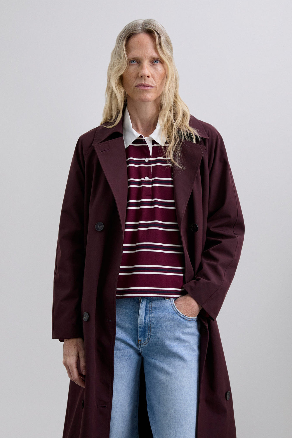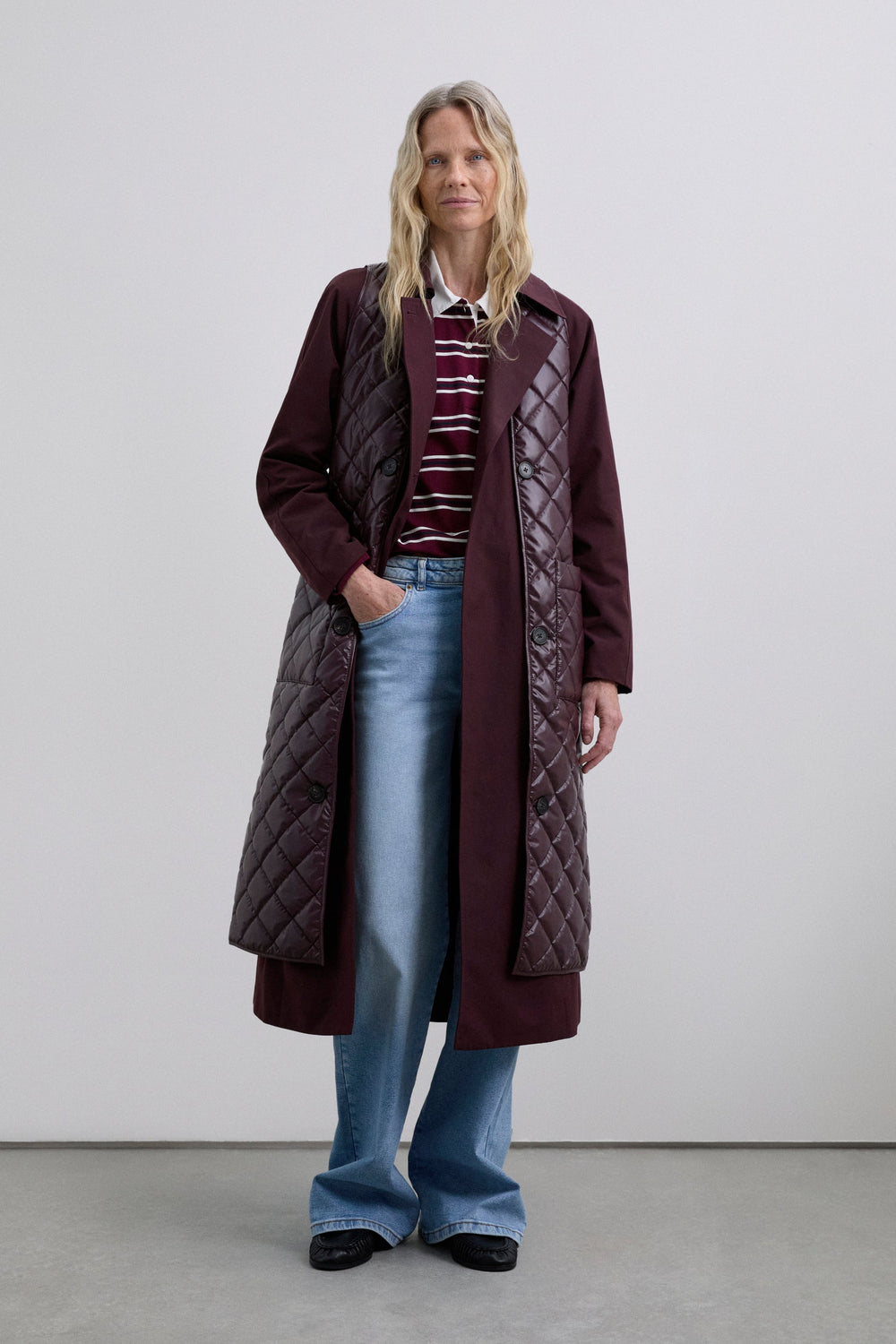Casaco gabardina impermeável. Ligeiramente oversize. Gola com botão de fecho e fecho frontal com botões e cinto. Manga comprida. Colete acolchoado extraível.
