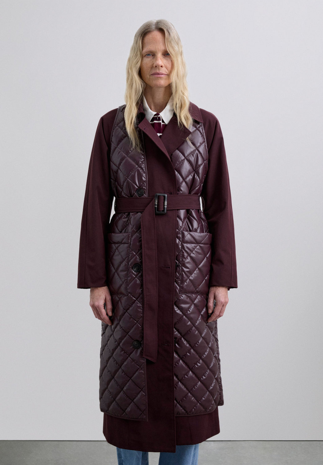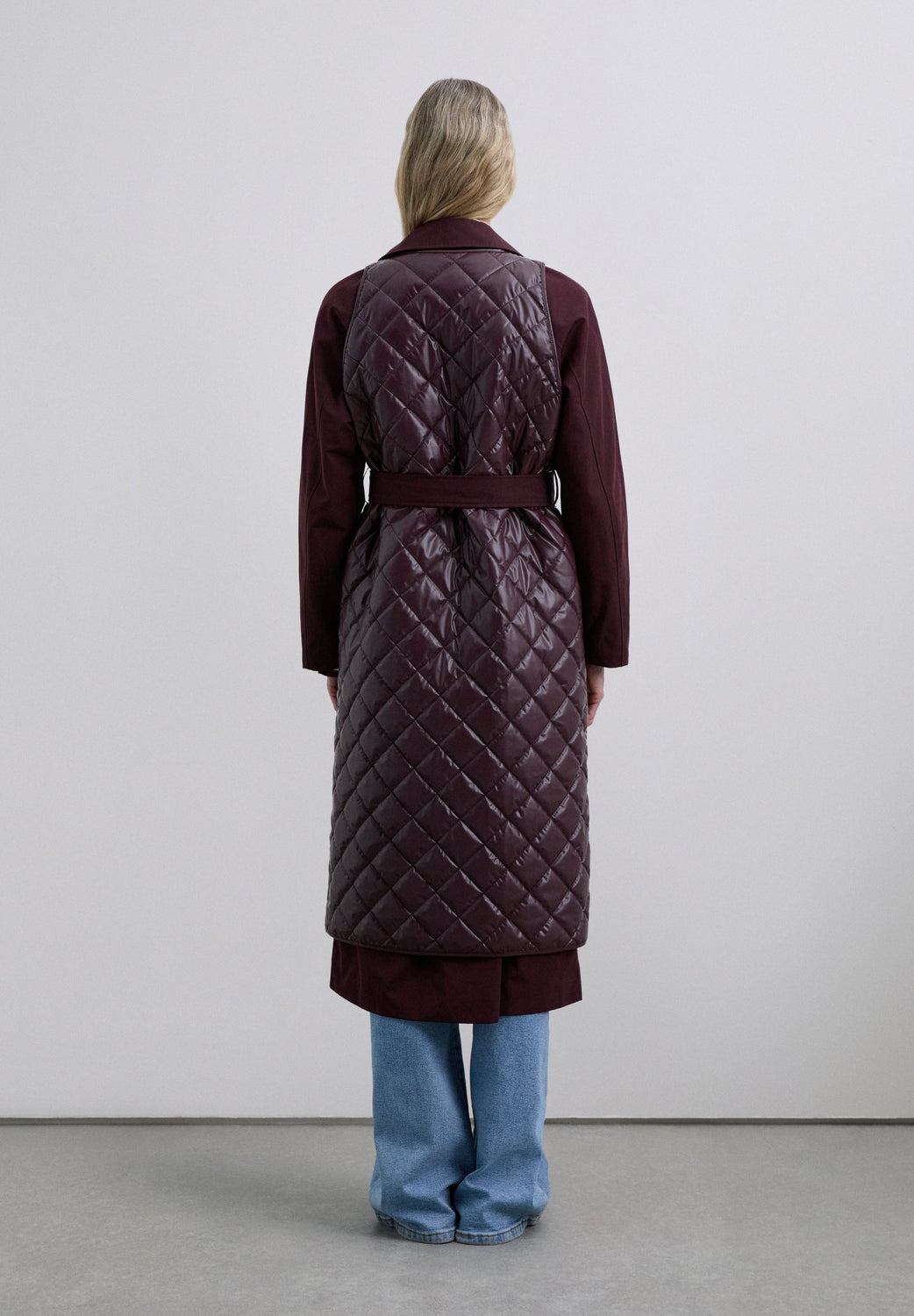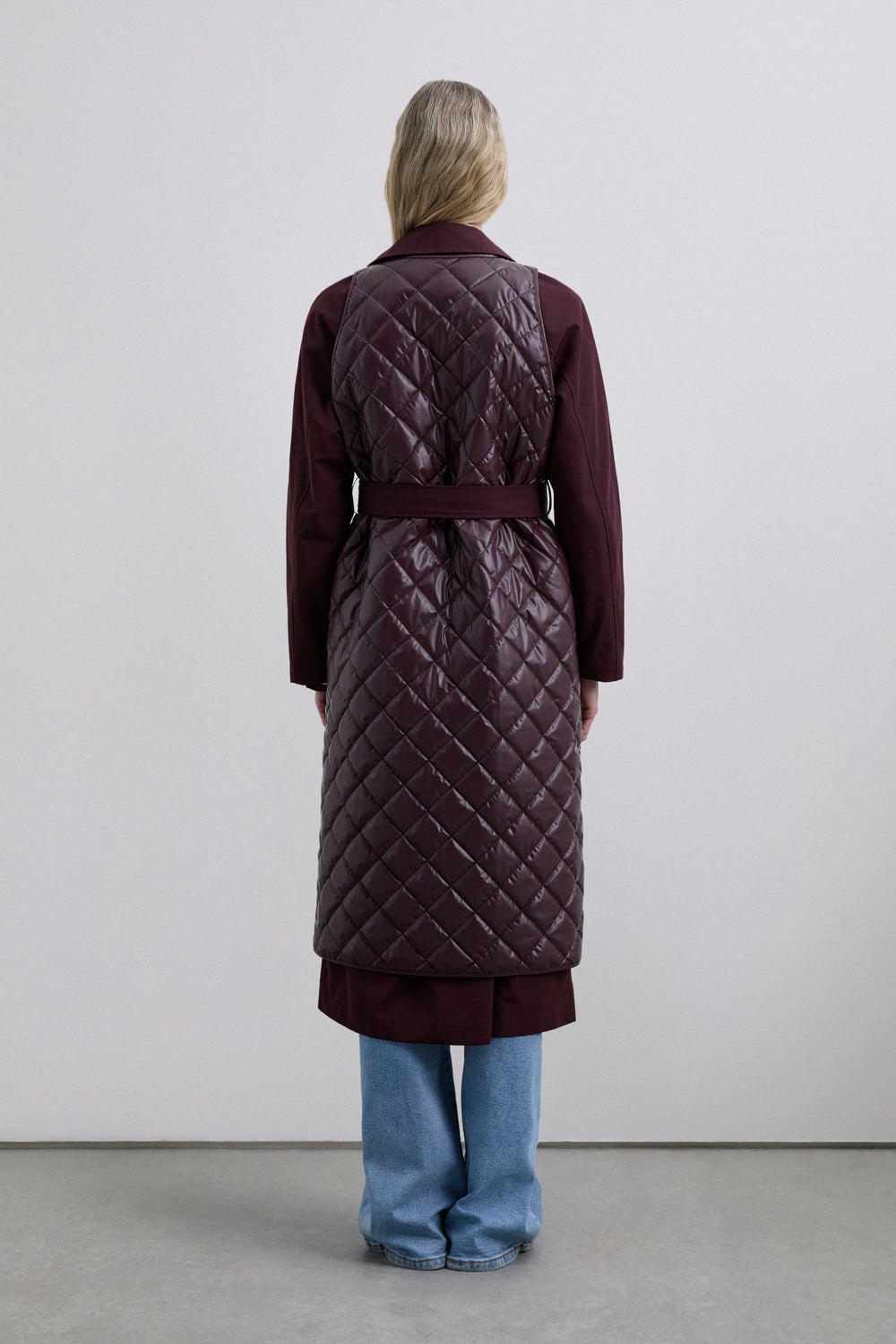 Casaco gabardina impermeável. Ligeiramente oversize. Gola com botão de fecho e fecho frontal com botões e cinto. Manga comprida. Colete acolchoado extraível.