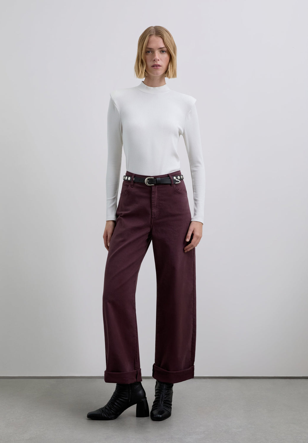 Top de manga comprida e gola alta, com design de ombreira. Regular fit. Tecido com eslasticidade. Tecido com estrutura.