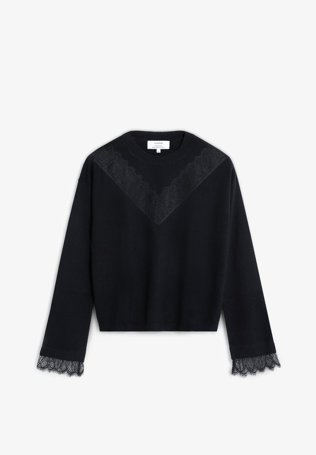 Sweater confecionada em mistura de lã e viscose. Regular fit. Decote redondo e manga comprida com acabamentos em nervuras. Pormenores de renda no peito e na parte inferior das mangas.