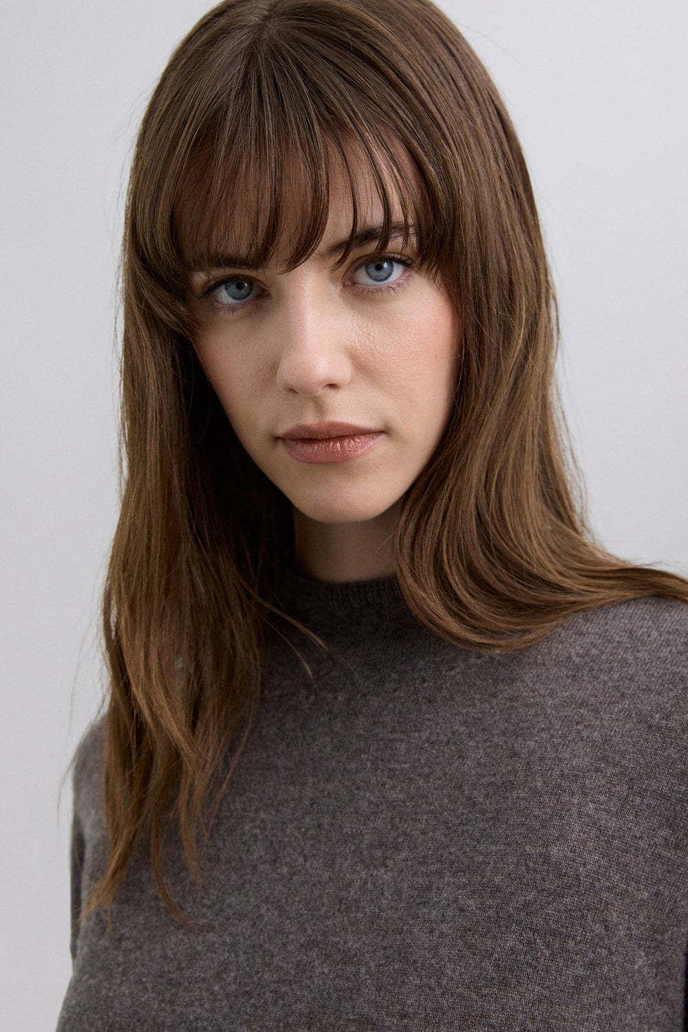Sweater de gola alta confecionada com mistura de lã. Regular fit. Manga comprida. Pormenores de mini aberturas frontais, gola e mangas.
