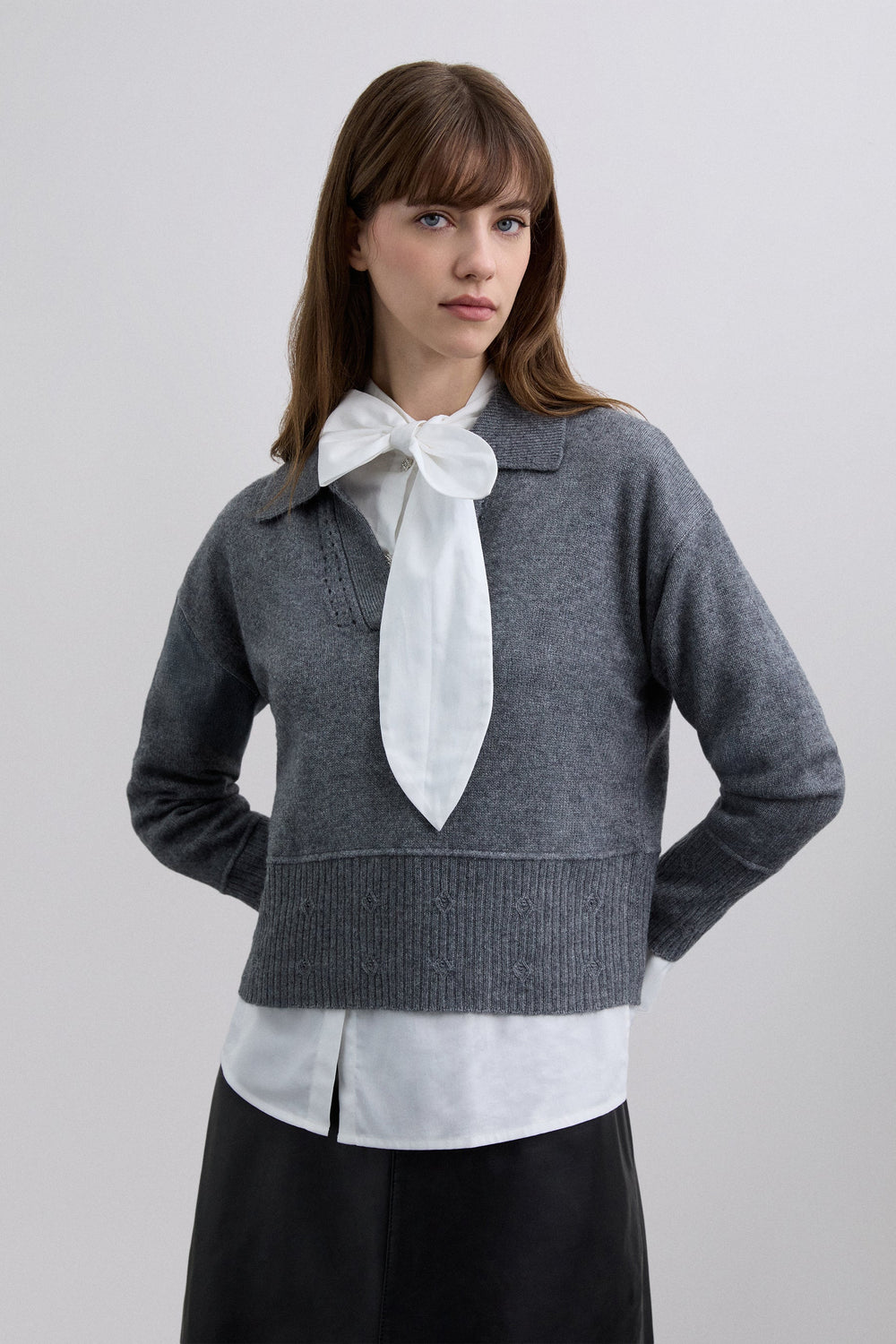 SWEATER CAMISA POLO COM PORMENORES EM RELEVO