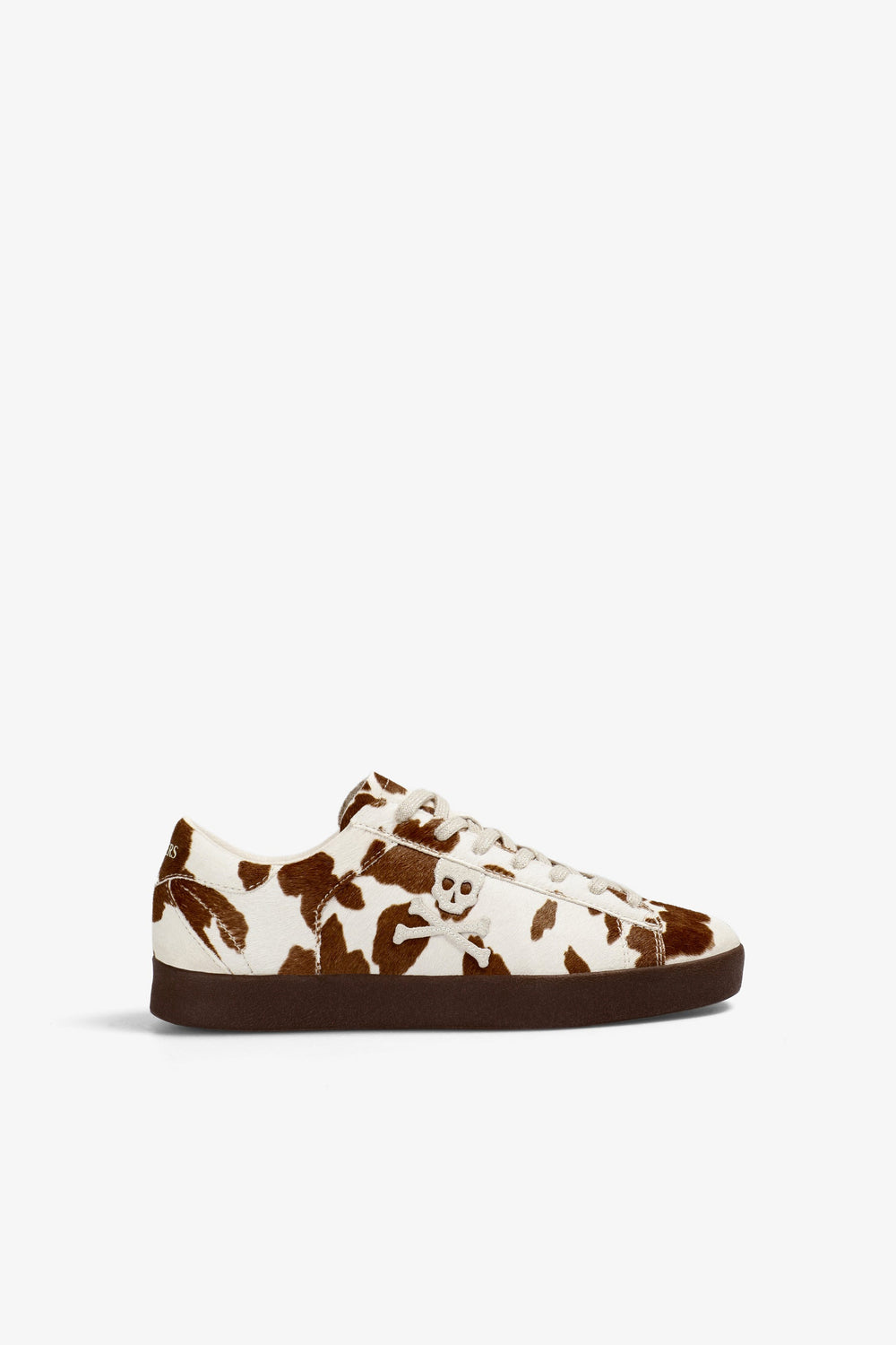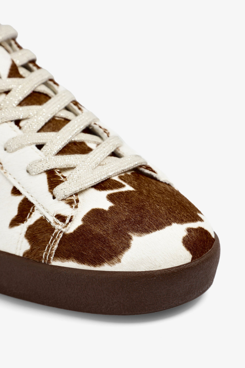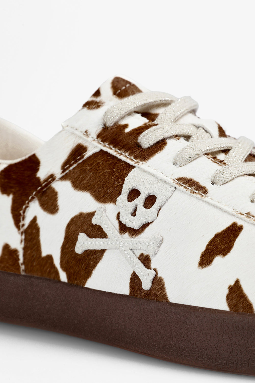 Sapatilhas confecionadas em 100% pele. Acabamento em pelo com padrão em estampado animal. Fecho com cordões. Pormenor de skull na lateral.