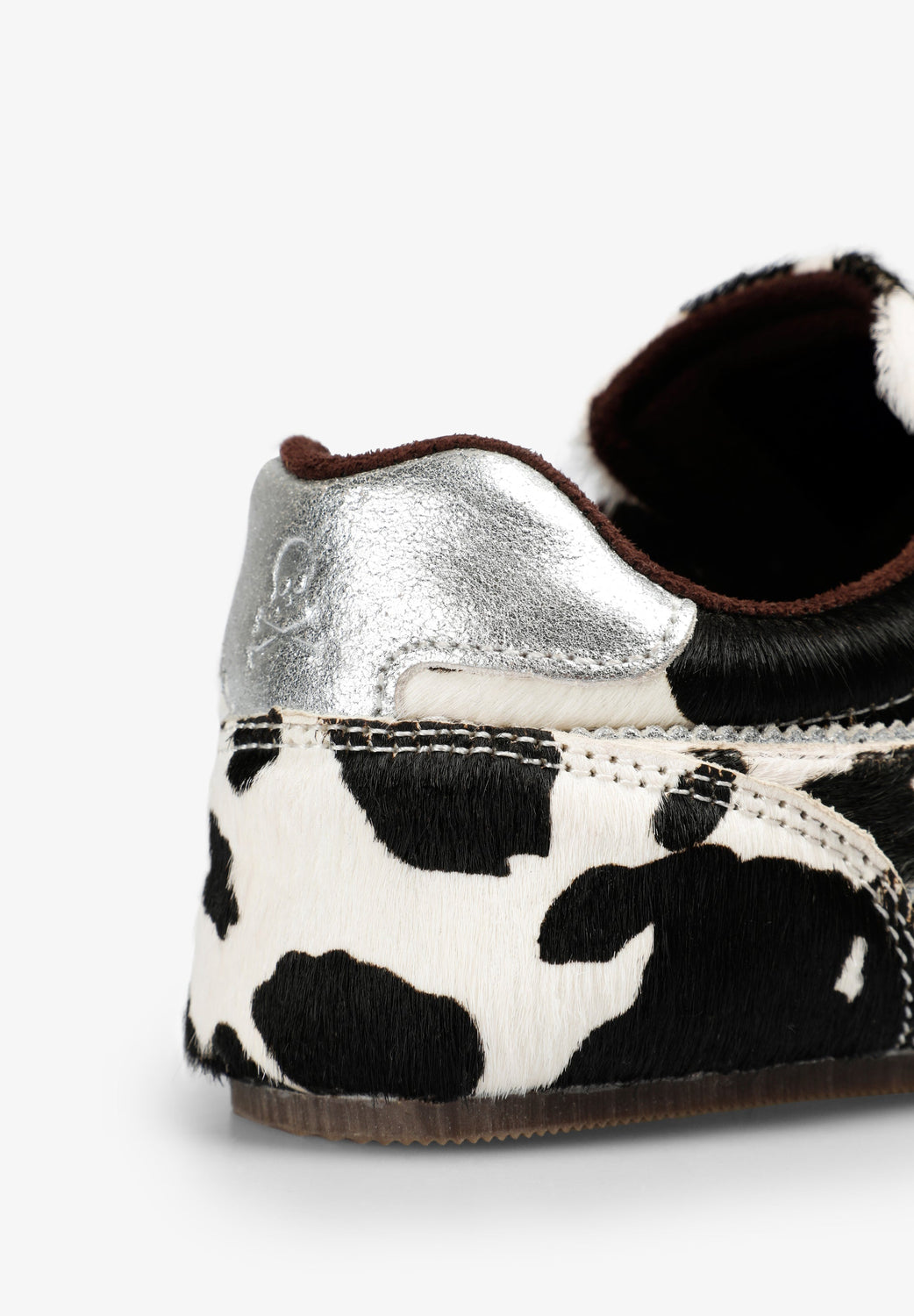 Sapatilhas confecionadas em mistura de pele de bovino. Sola de caucho resistente e design versátil. Calcanhar em contraste gravado com skull. Designs em contraste.