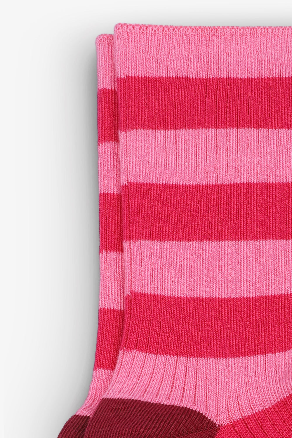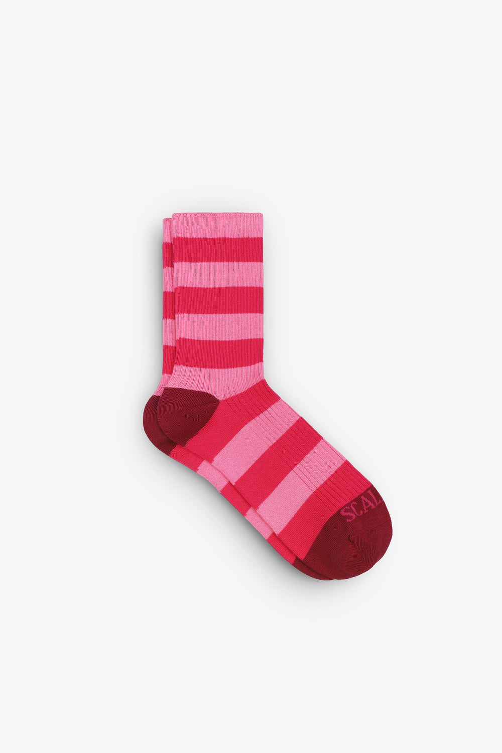 Meias confecionadas em 100% algodão. Padrão às riscas. Pormenor de logótipo em contraste.