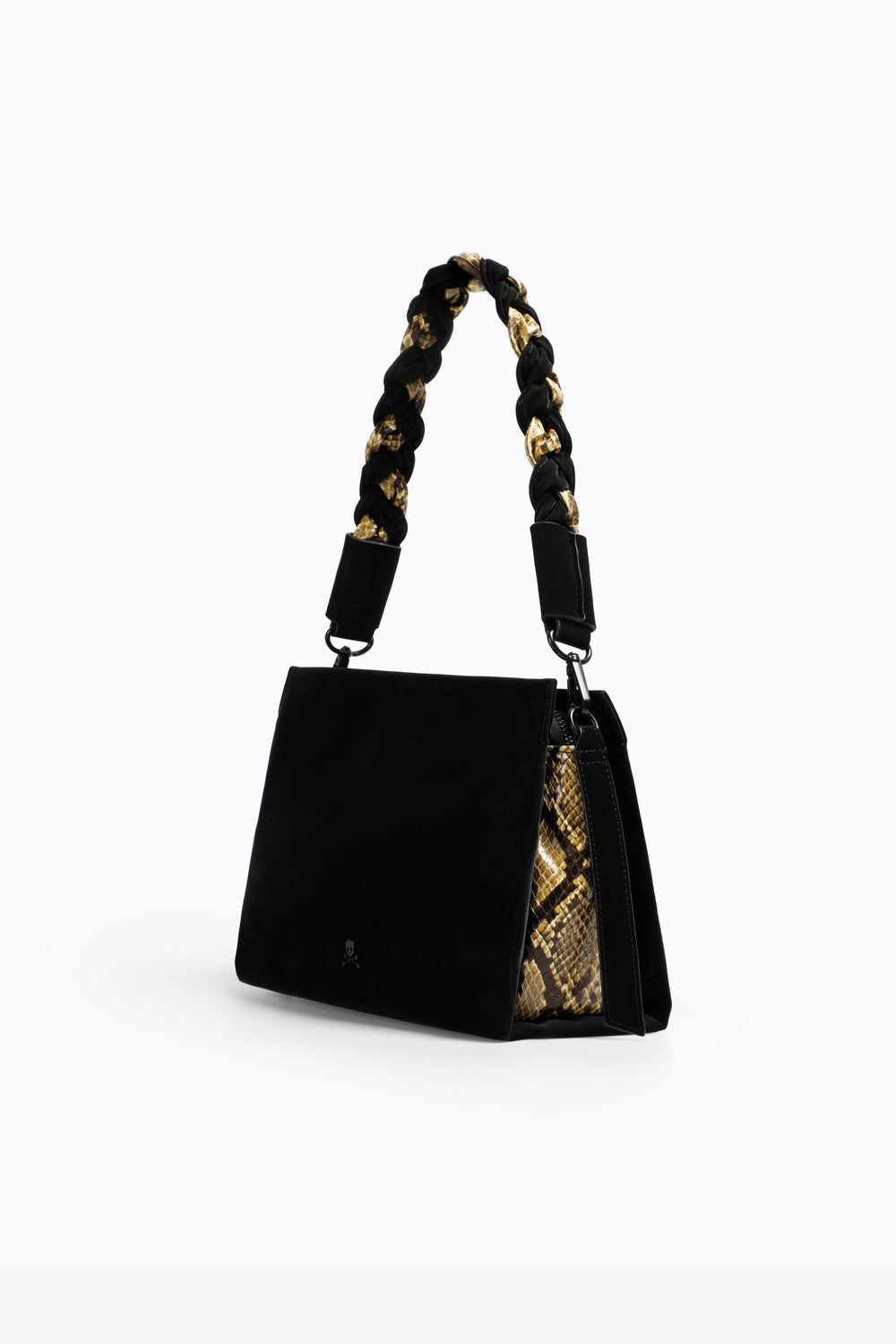 BOLSA ENTRANÇADA COM PORMENORES DE ESTAMPADO ANIMAL