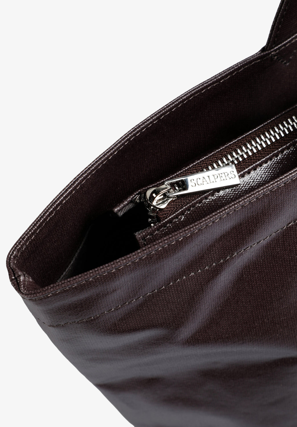 Bolsa shopper. Alça dupla. Padrão de logótipo. Fecho de correr. Bolso interior com fecho de com fecho correr e pormenor de logótipo.