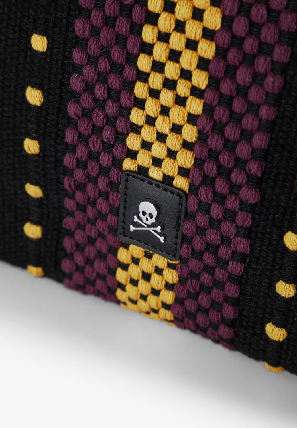 Bolsa shopper confecionada em 100% algodão orgânico com étnico. Forro interior com bolso. Fecho com botão magnético e pormenor de remendo com logótipo frontal.