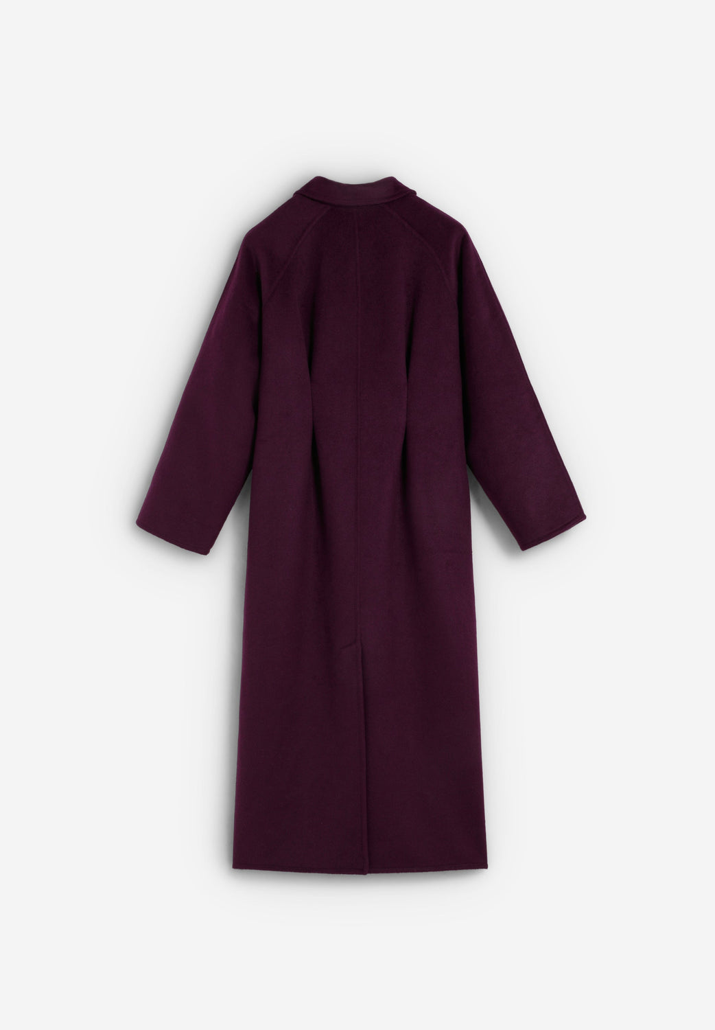 Casaco comprido confecionado em mistura de lã. Casaco feito à mão com mangas raglã. Esta peça de roupa conta com um cachecol preso à gola, fecho de cinco botões e pregas atrás.