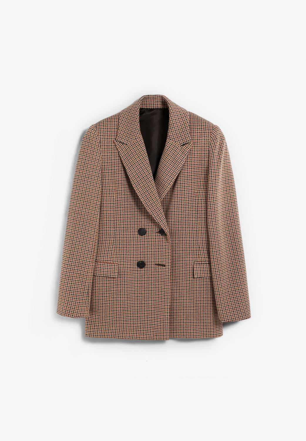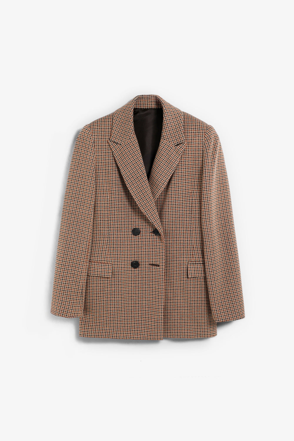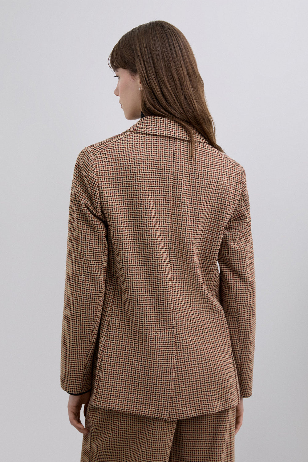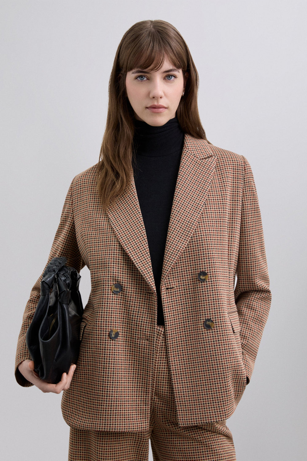 Blazer com padrão pata de galo. Regular fit. Gola com lapela entalhada Fecho cruzado com botões à frente. Bolsos à frente com aba.