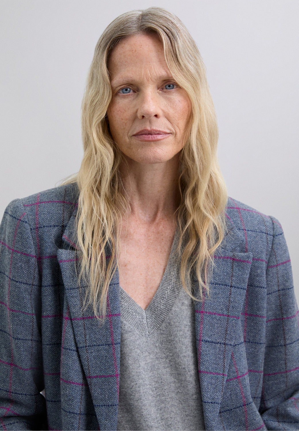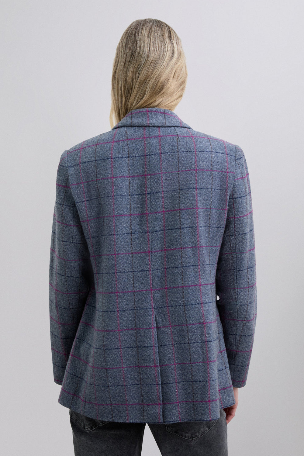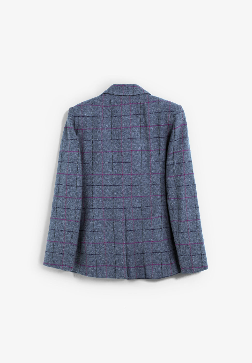 Blazer confecionado em 100% lã. Padrão em xadrez. Almofadas de ombro estruturadas. Fecho frontal com botões. Dois bolsos traseiros com aba.