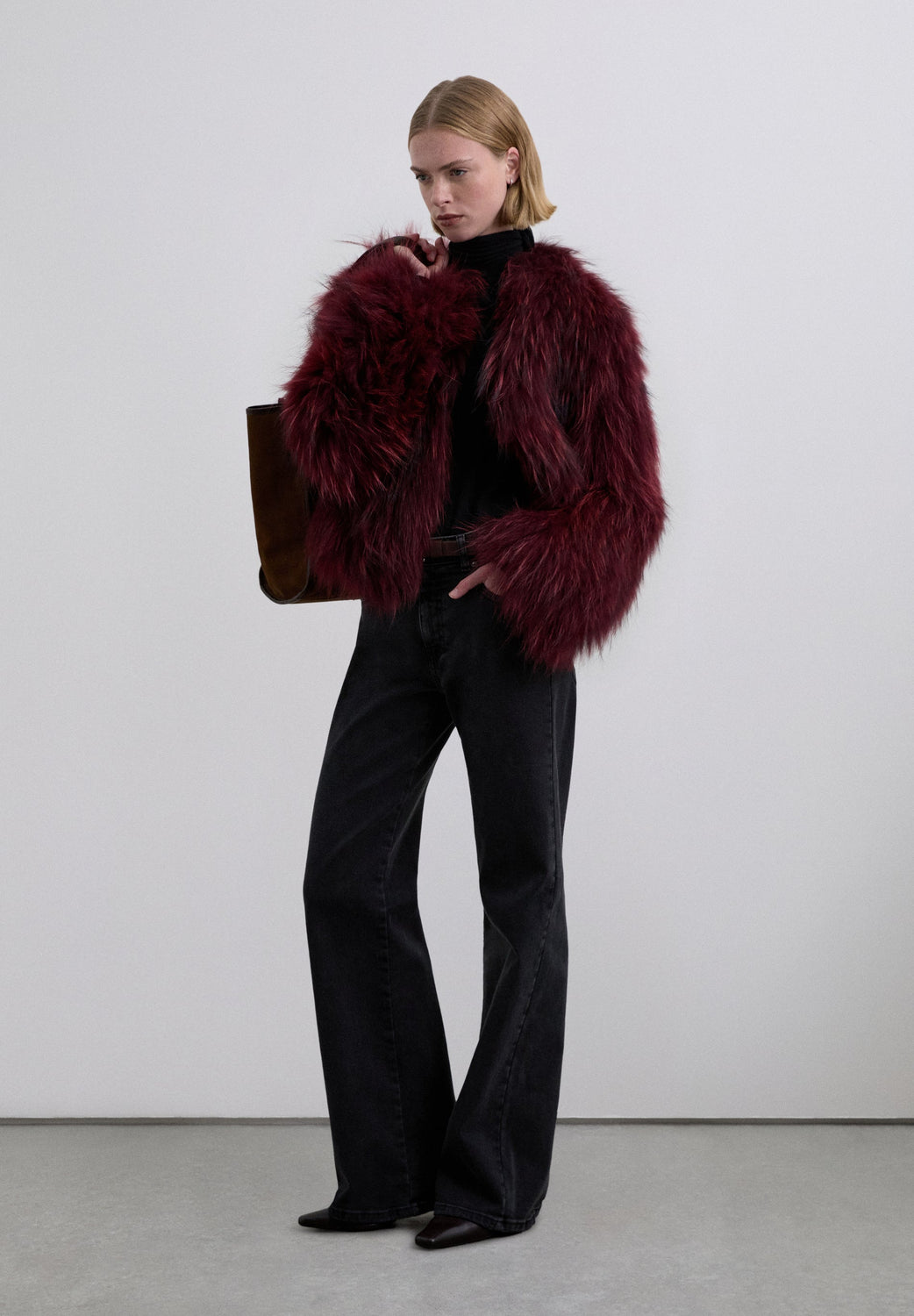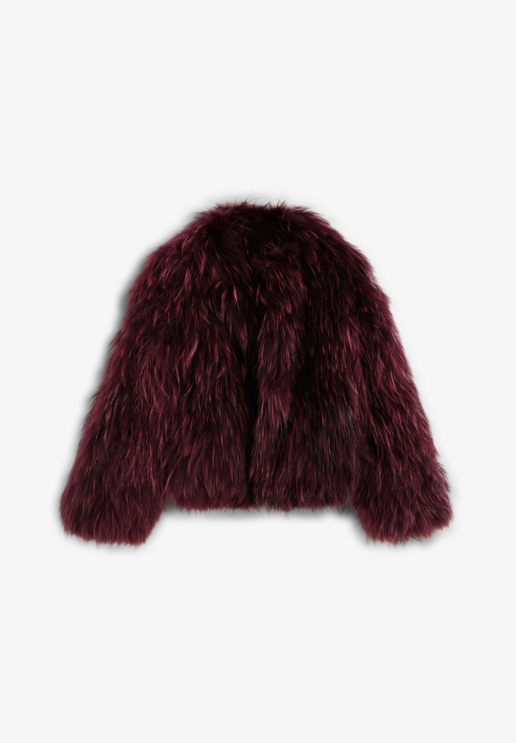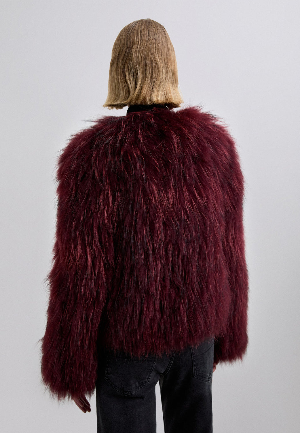 Cardigan confecionado em 100% pelo de guaxinim natural. Manga comprida. Corte médio pelas ancas.