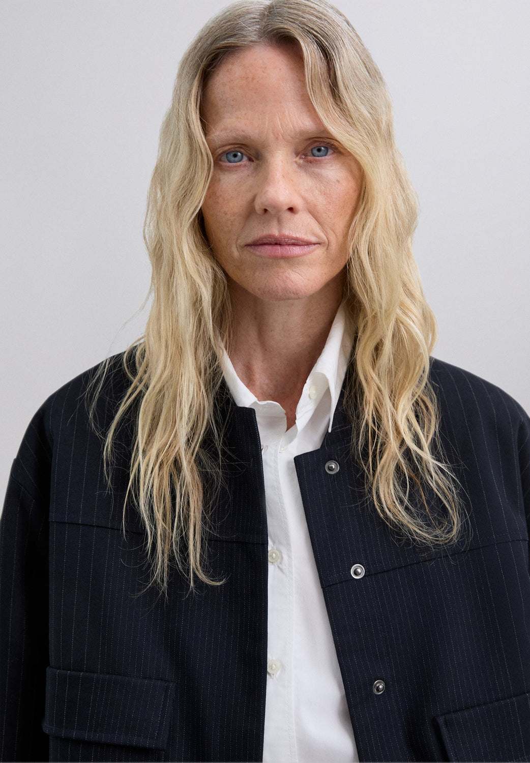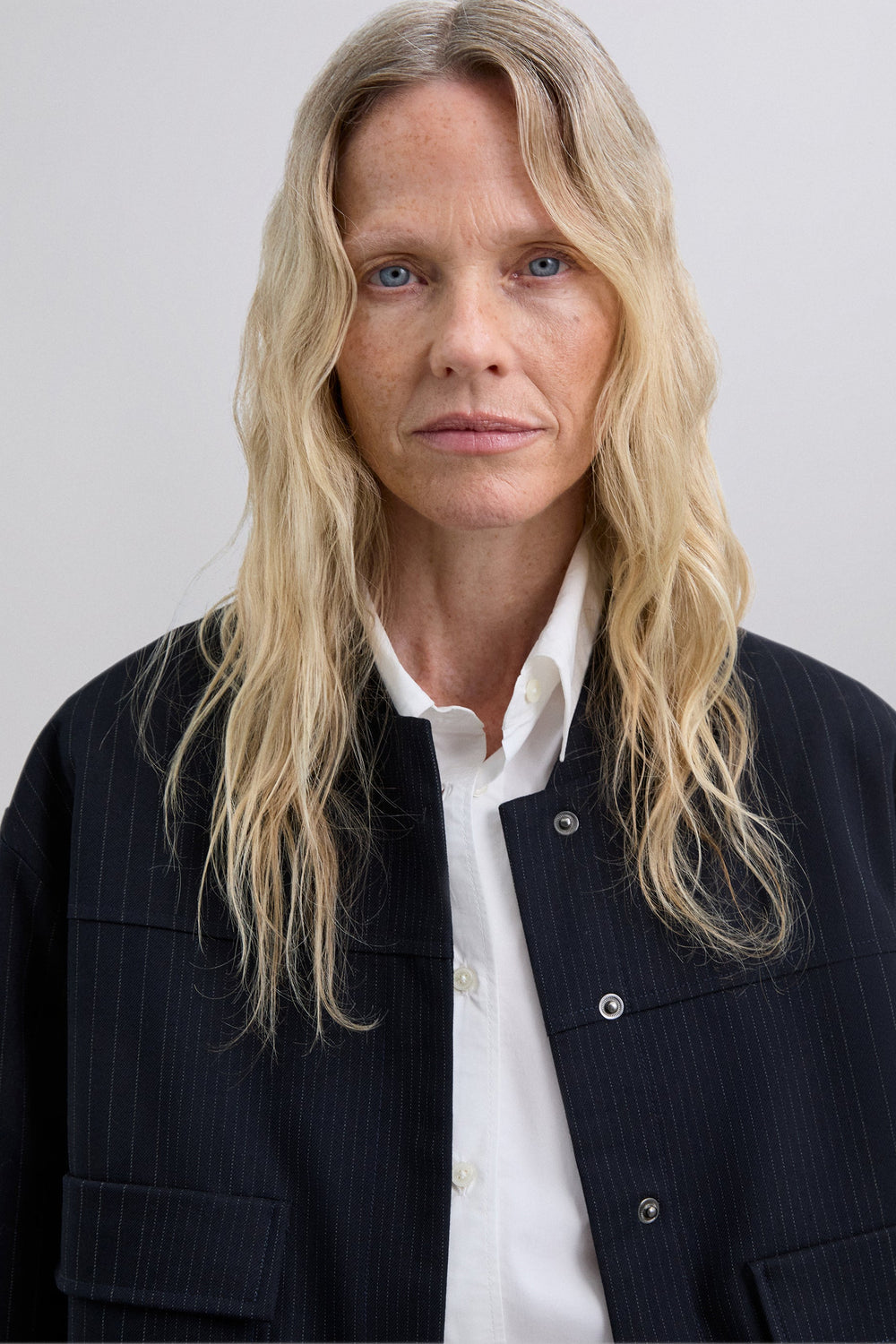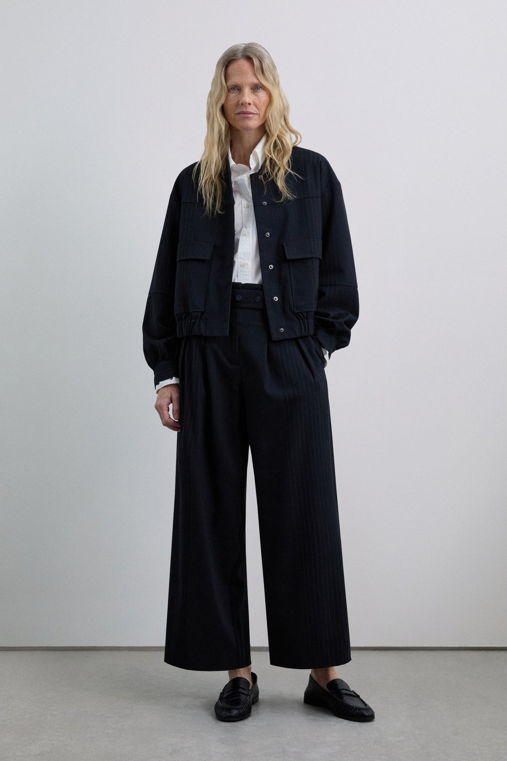 Cardigan bomber risca diplomática. Gola alta cortada em viés. Manga comprida. Cintura levemente elástica. Fecho de correr e botões à frente. Dois bolsos frontais com aba.