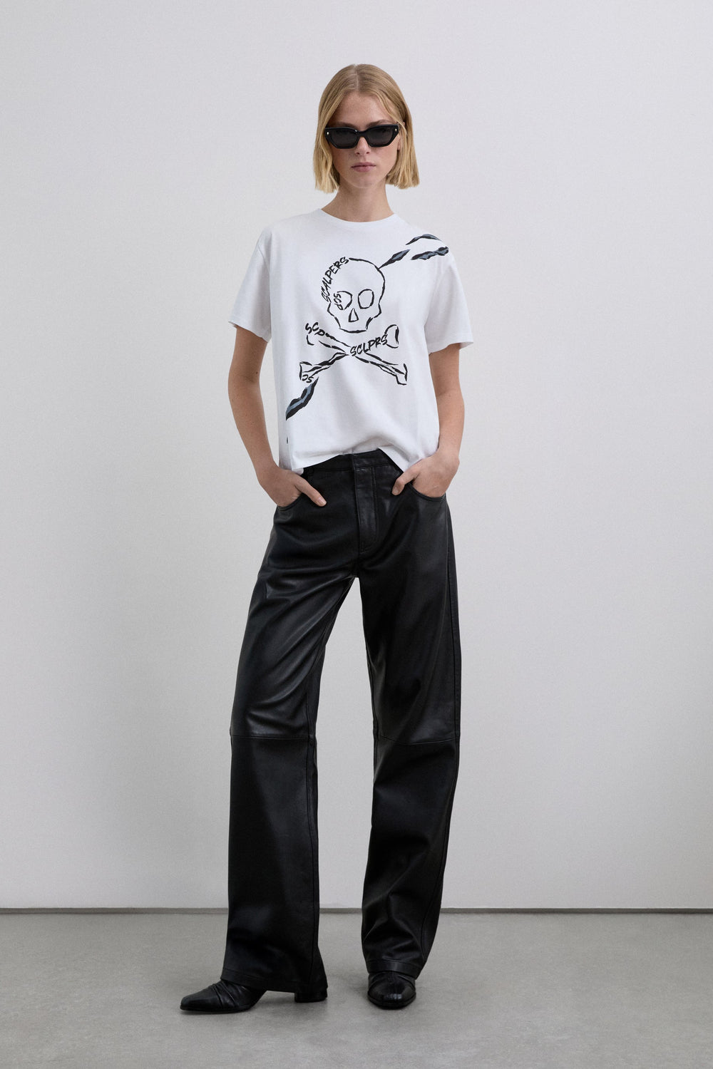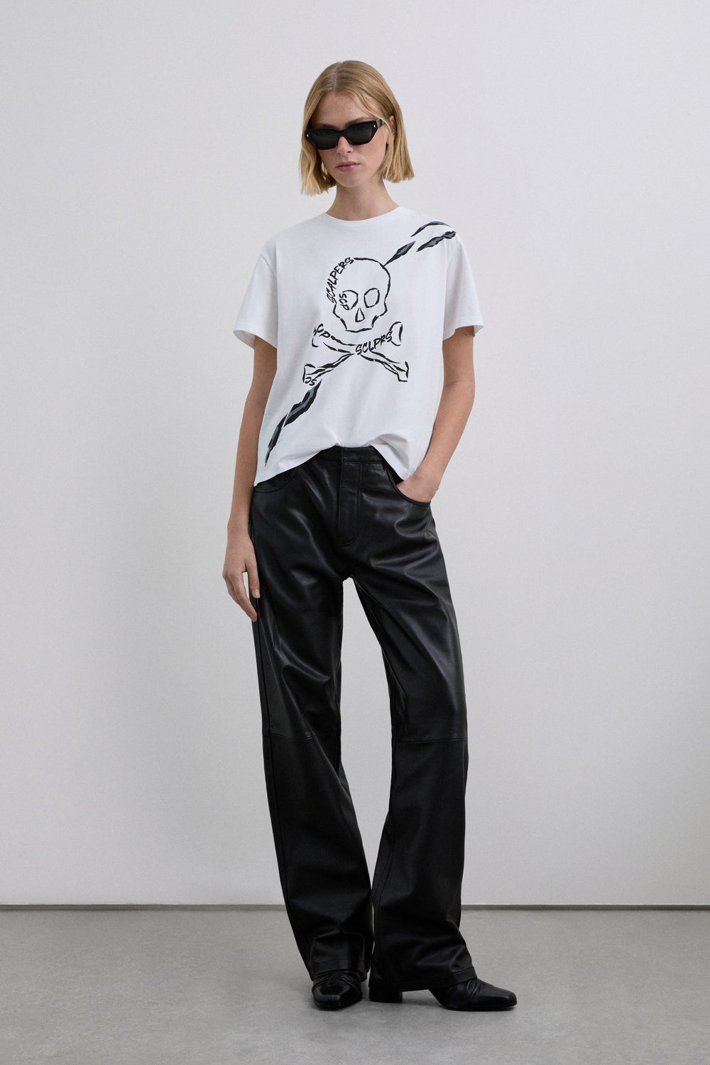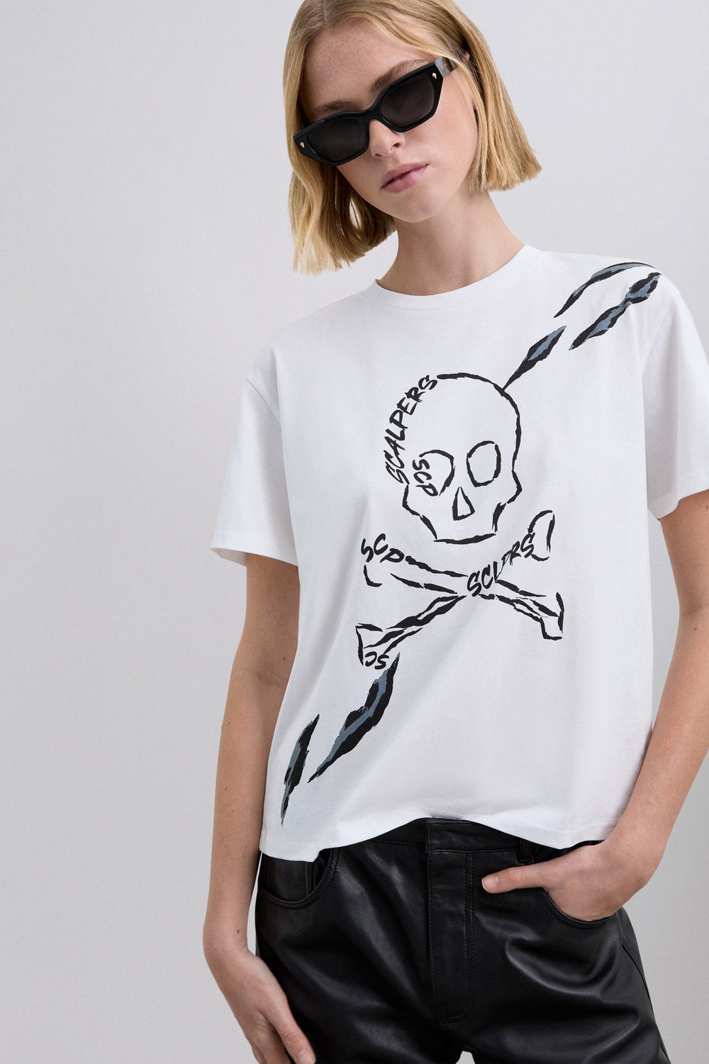 T-shirt confecionada em 100% algodão. Regular fit. Padrão frontal com skull. Decote redondo. Manga curta.