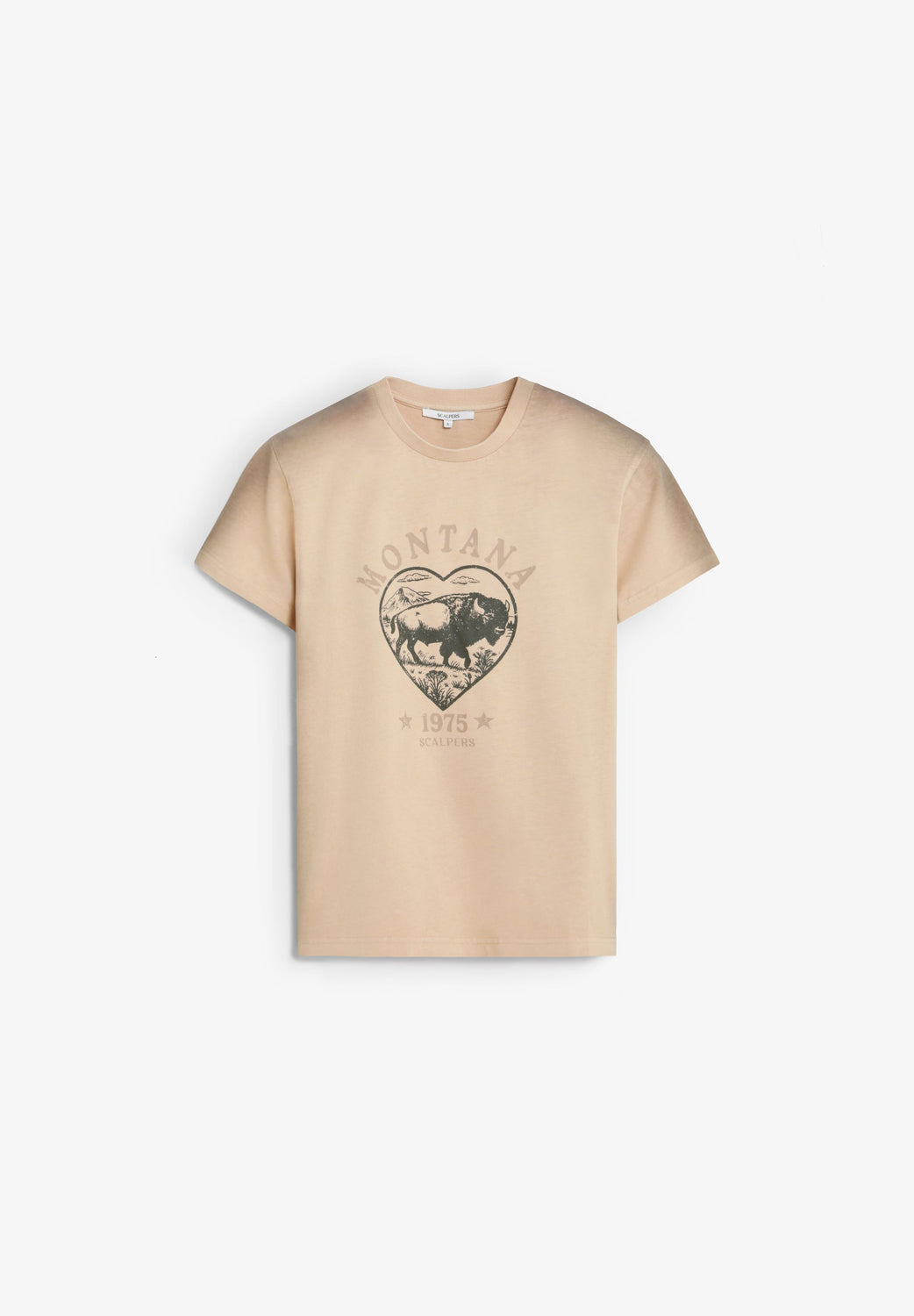 T-shirt confecionada em 100% algodão BCI. Regular fit. Decote redondo em nervuras e manga curta. Padrão à frente.