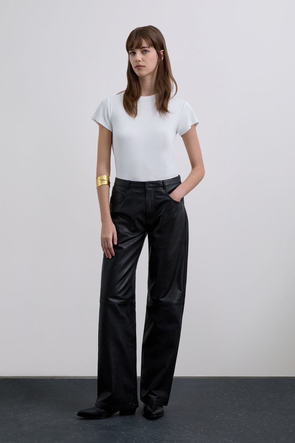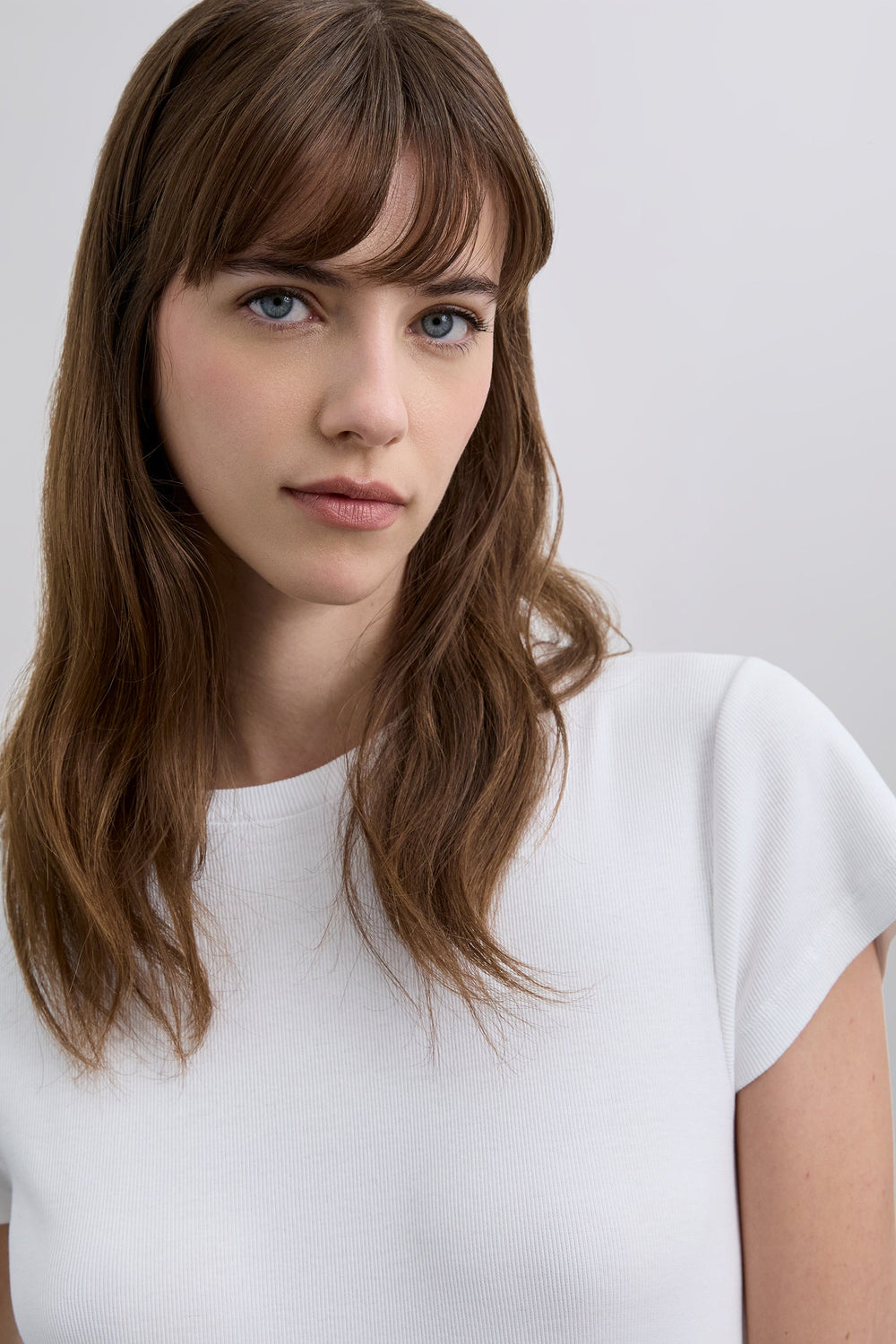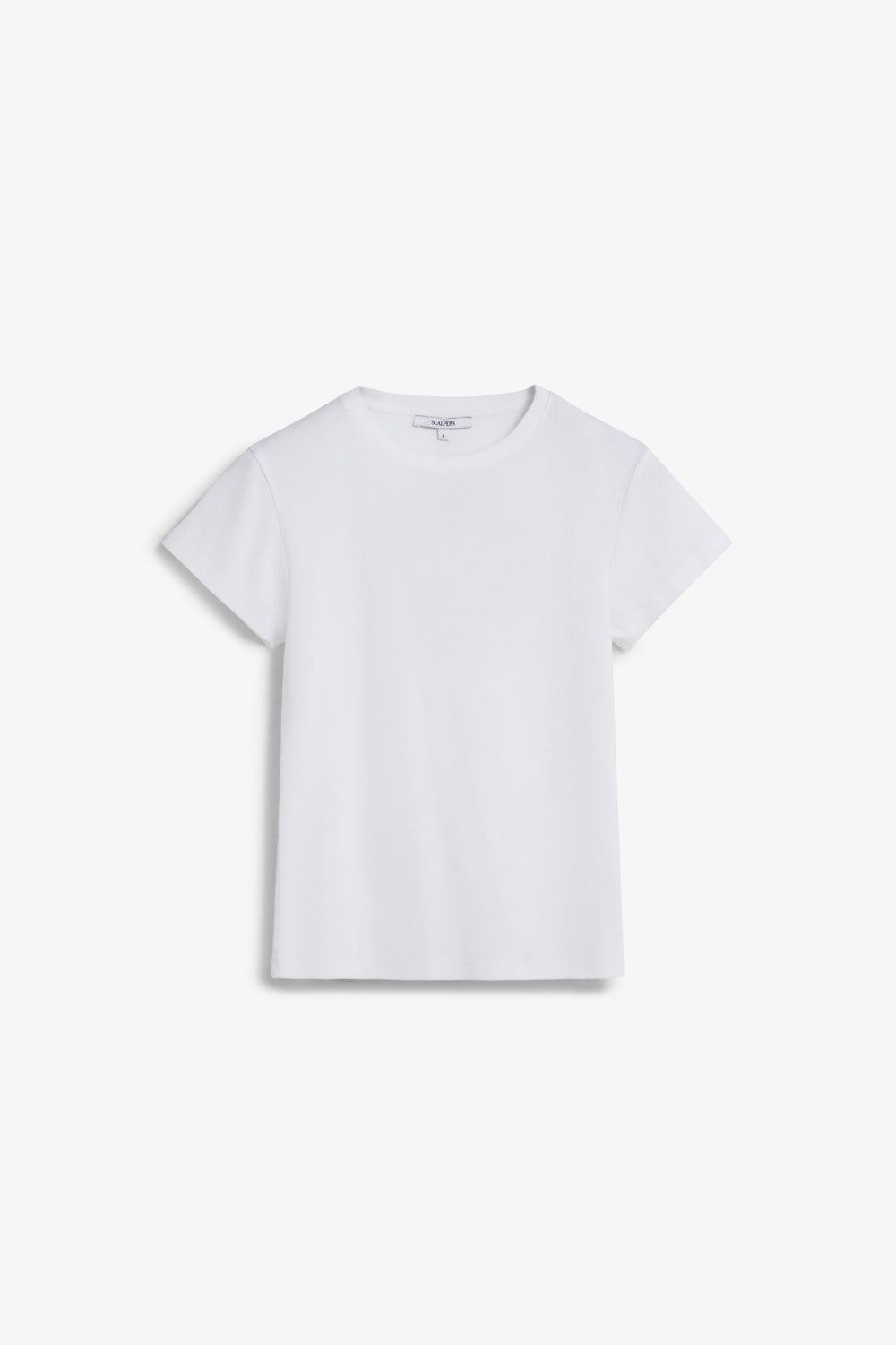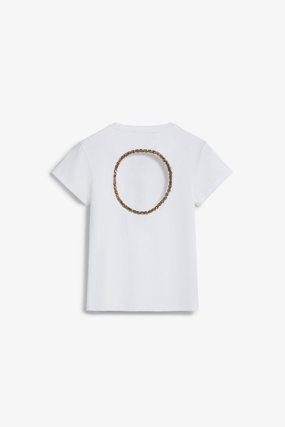 T-shirt confecionada em mistura de algodão ligeiramente elástico. Corte regular fit. Decote redondo, manga curta. Parte de trás com pormenor de pedraria.