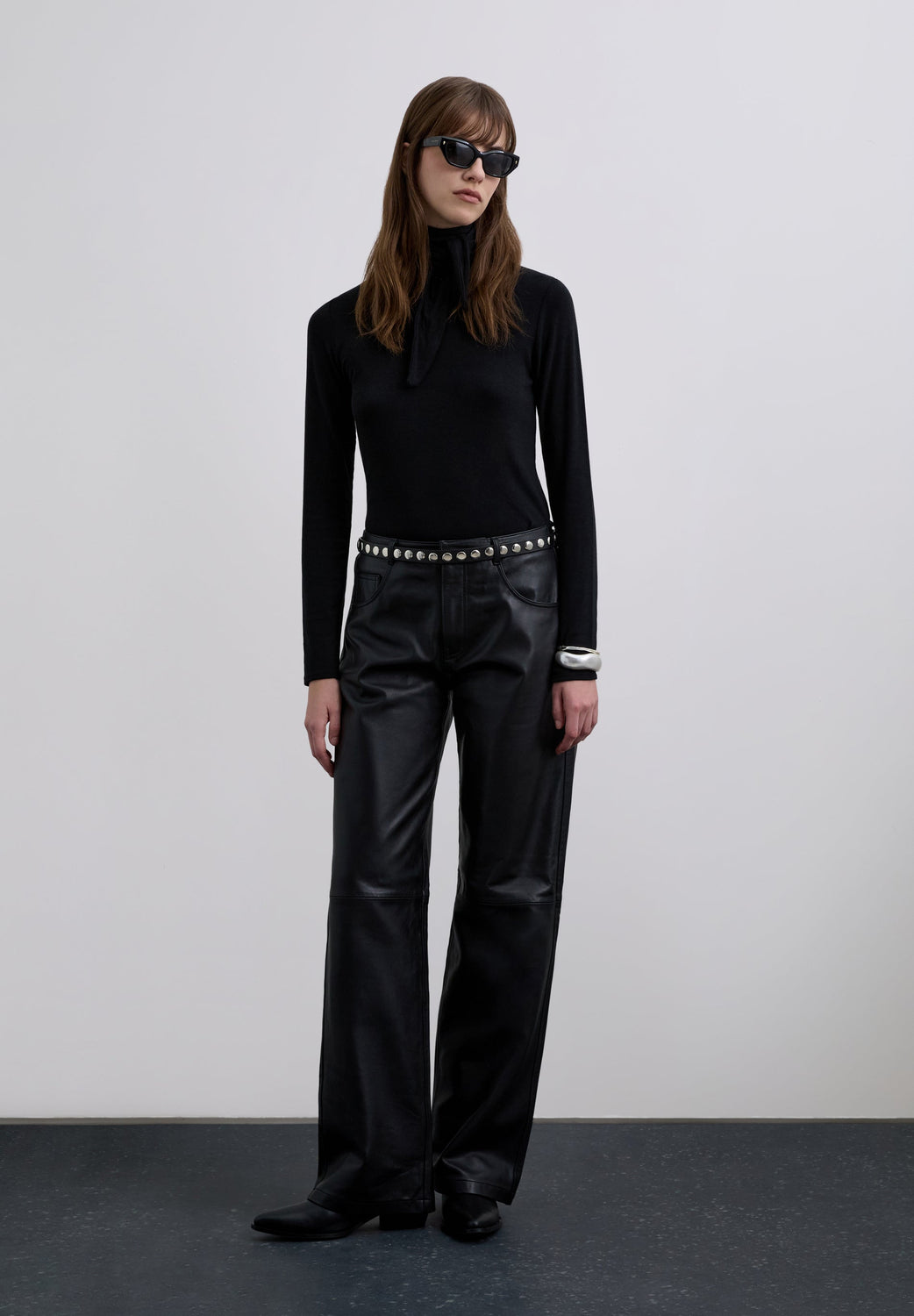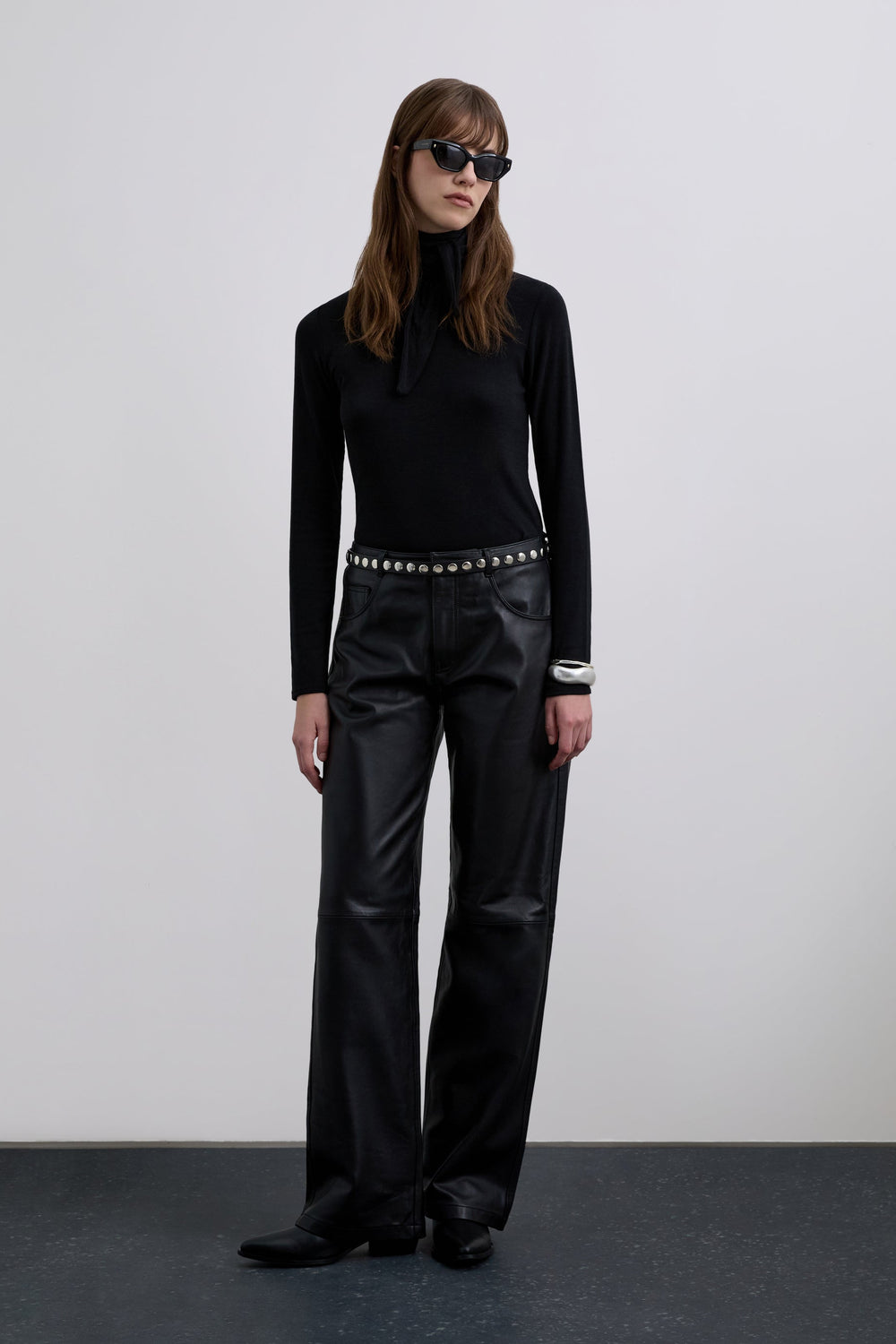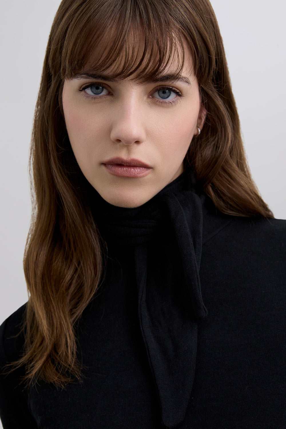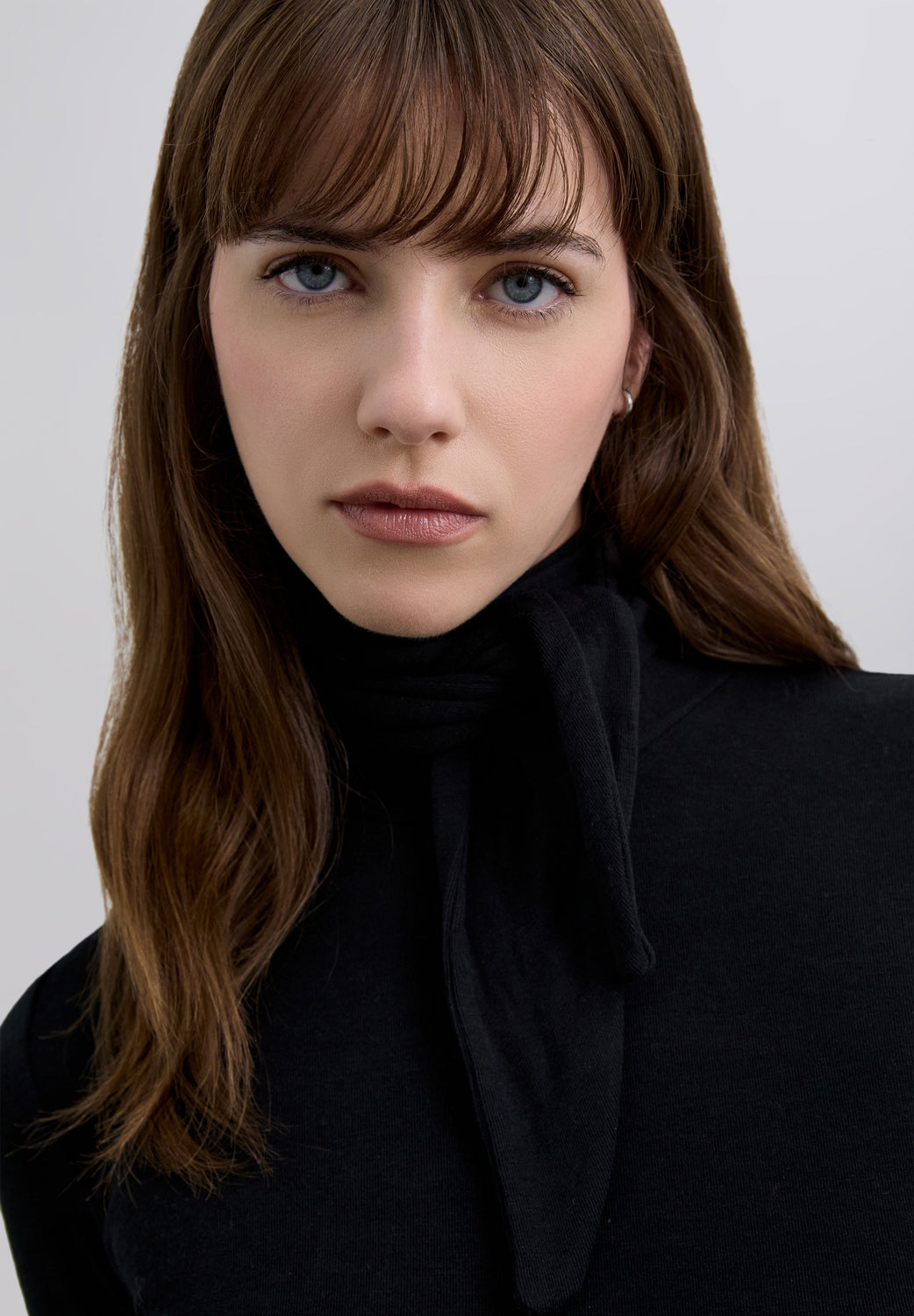 T-shirt de gola enrolada e pormenor de laço na gola estilo lenço de bolso ajustável. Manga comprida. Slim Fit.