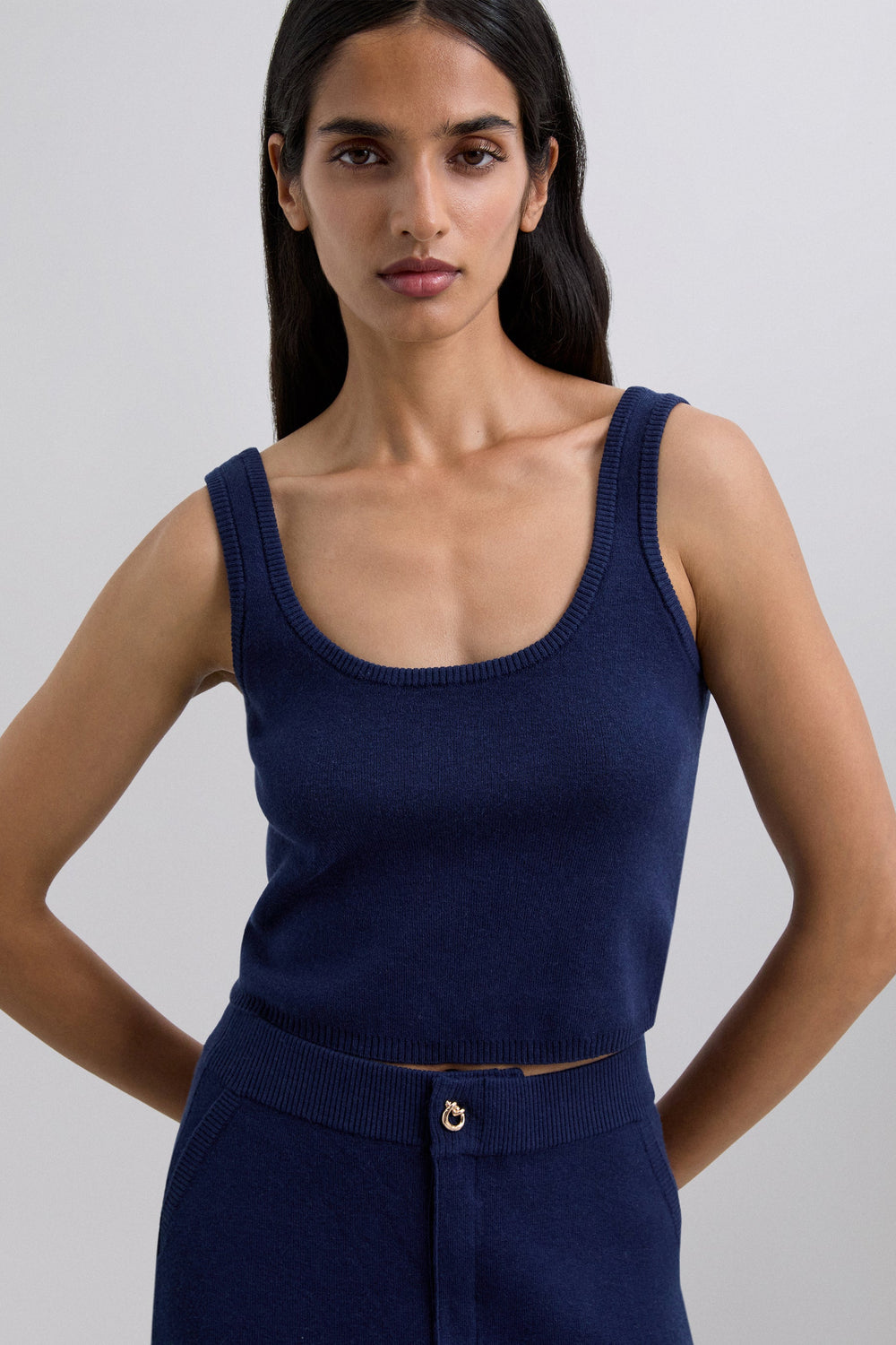 Top Sessùn confecionado em tecido de mistura de algodão, viscose e lã. Corte Slim Fit, decote redondo e alças largas. Pormenor de renda no decote.