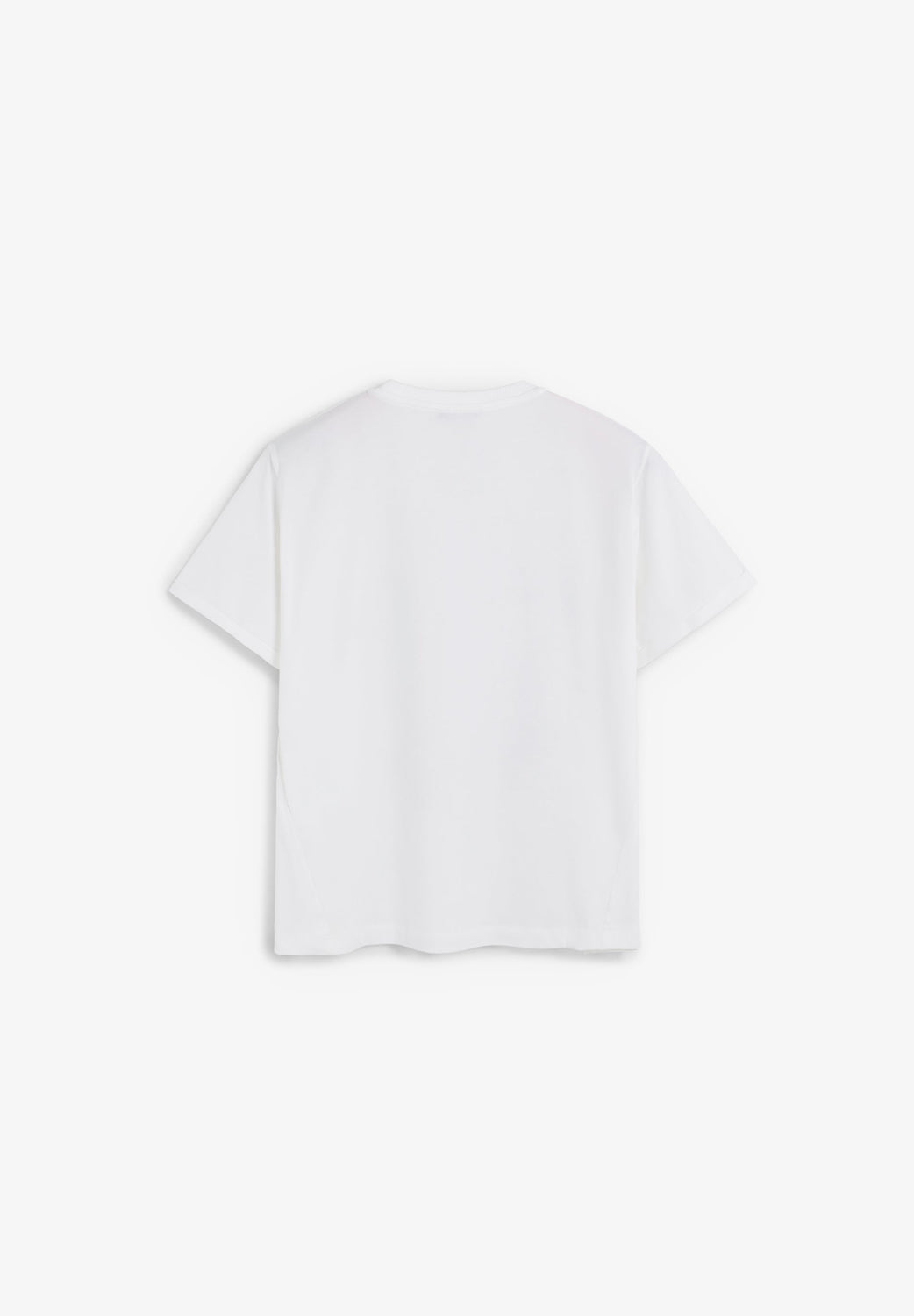 T-shirt confecionada em 100% algodão. Regular fit. Padrão frontal com logótipo. Decote redondo. Manga curta. Pormenor de bainha irregular.