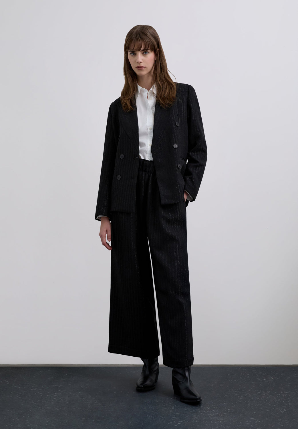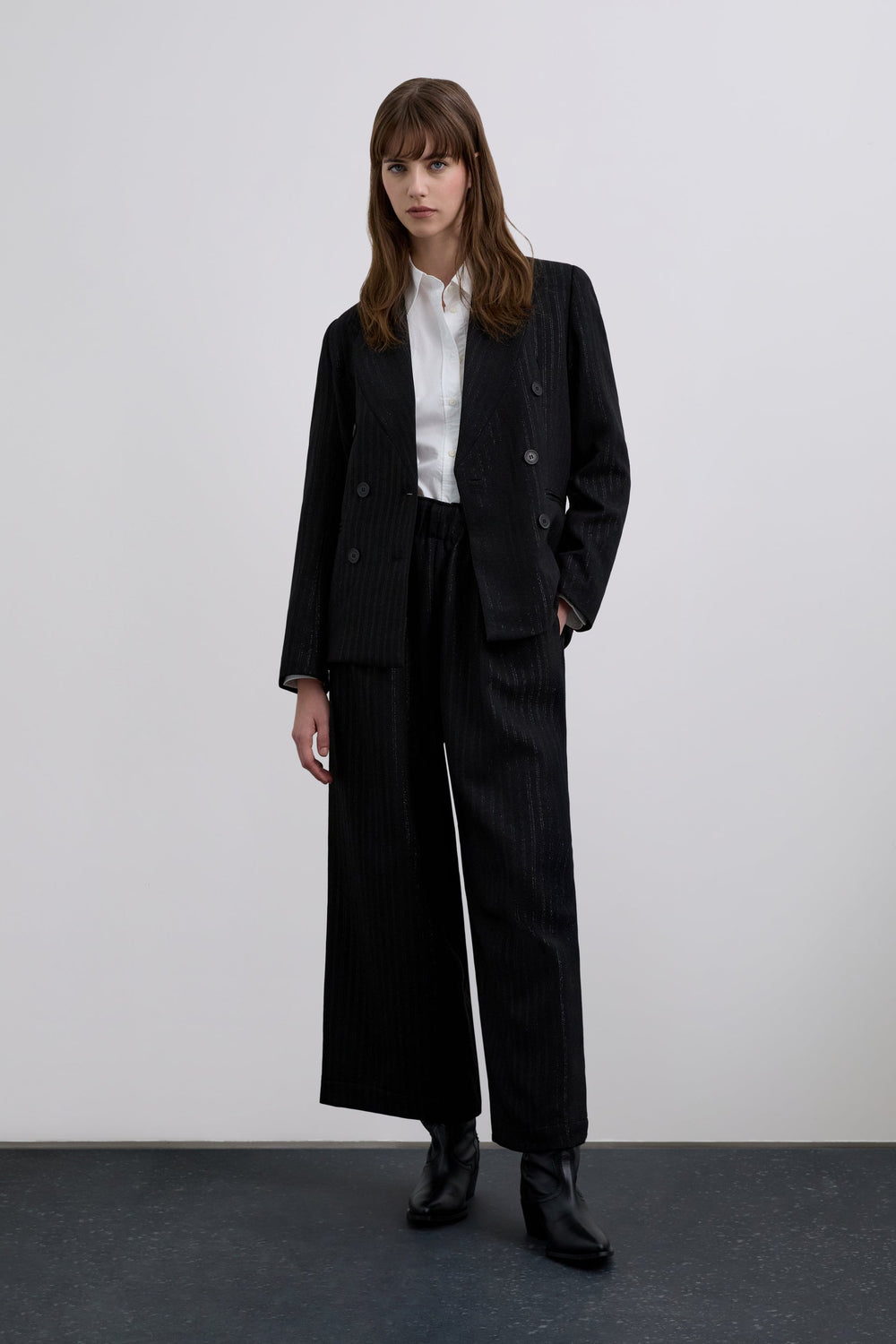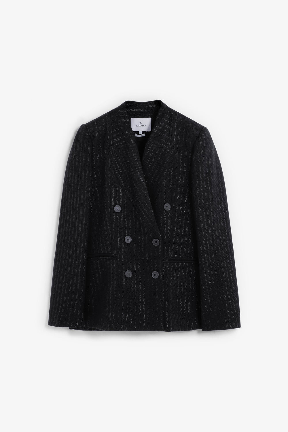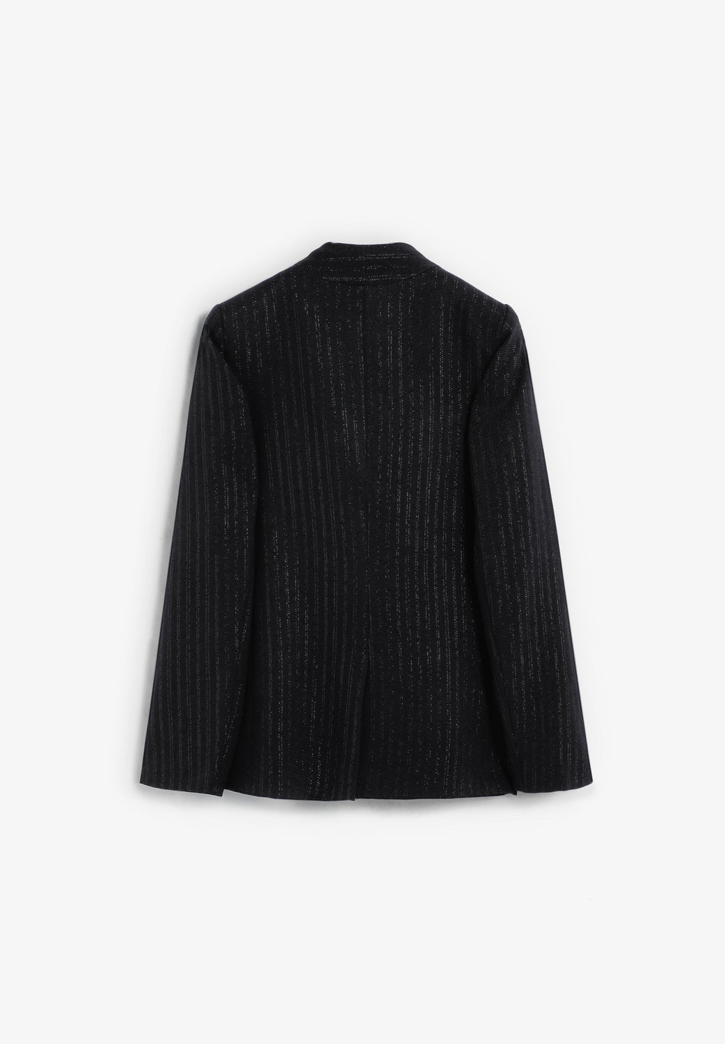 Blazer de risca diplomática e dupla abotoadura. Gola lapela. Corte Regular Fit. Fecho cruzado com botões à frente. Bolsos à frente com aba.