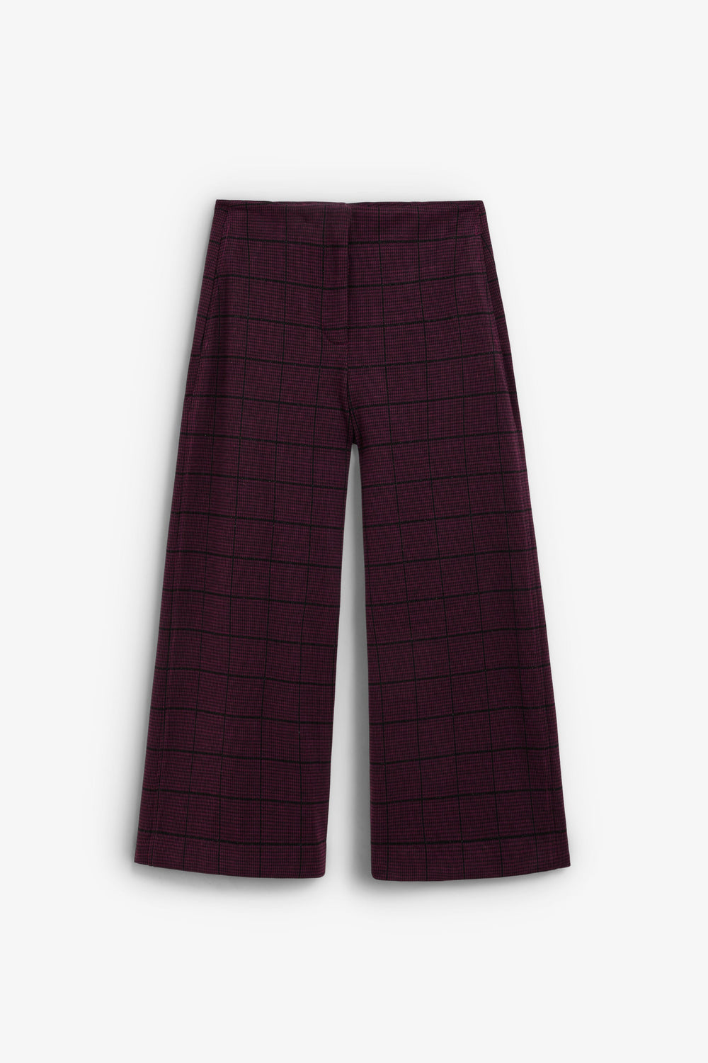Calças culottes às riscas. Cintura subida. Bolsos laterais com fecho de correr frontal.