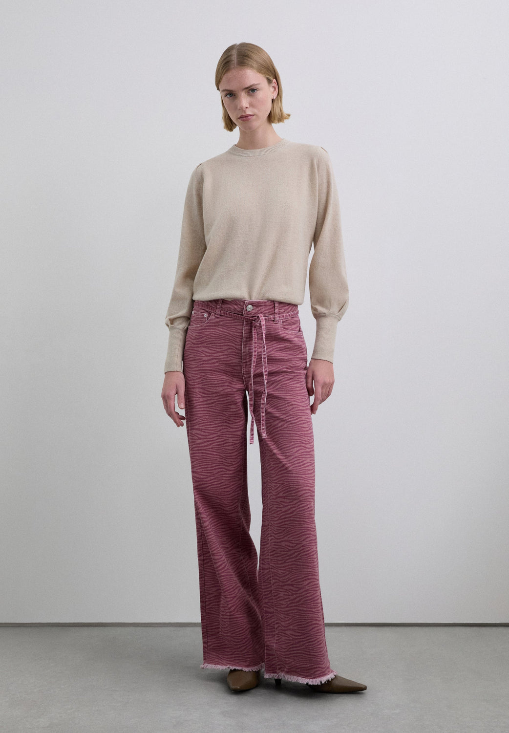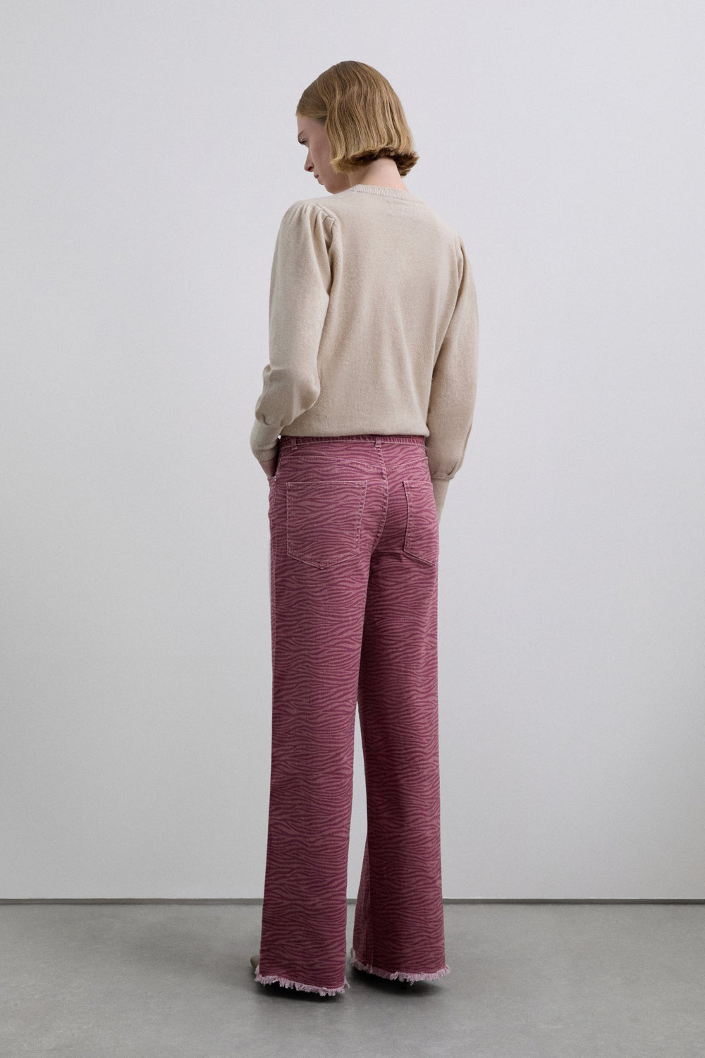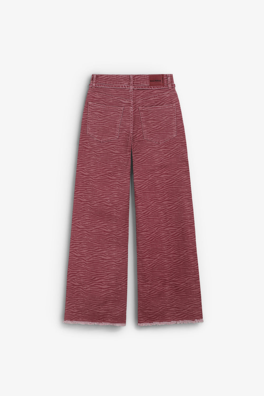 Calças confecionadas em 100% algodão BCI. Padrão de estampado animal. Full length. Costuras centrais. Efeito desbotado. Cordão no tom na cintura. Bolsos laterais e atrás.