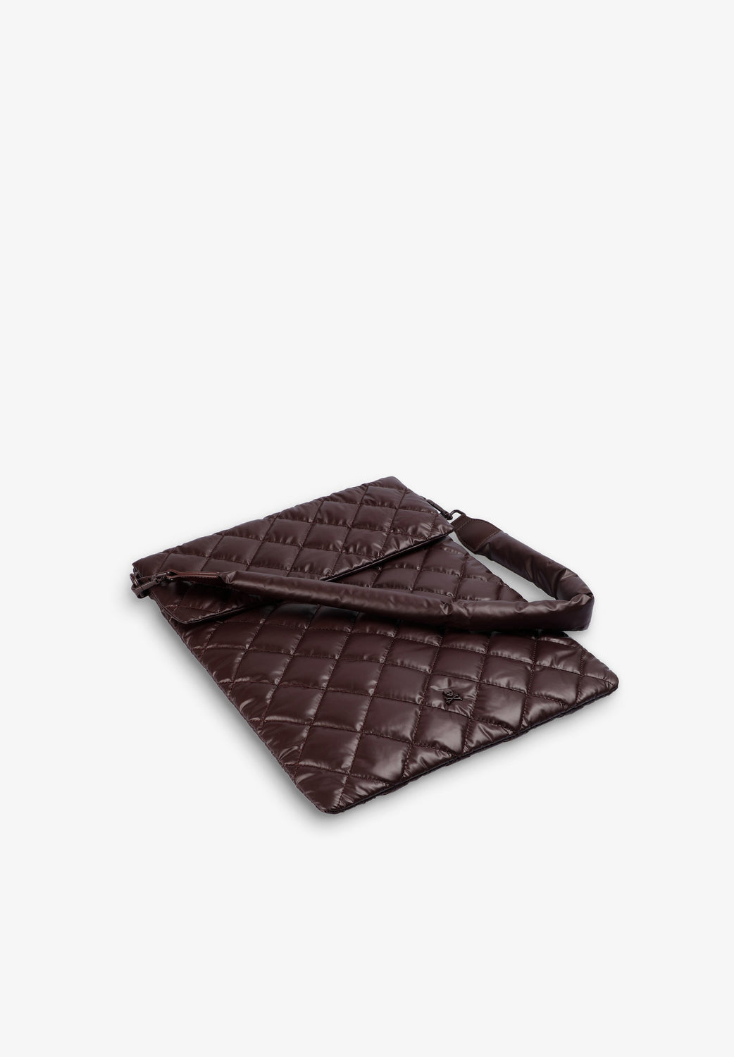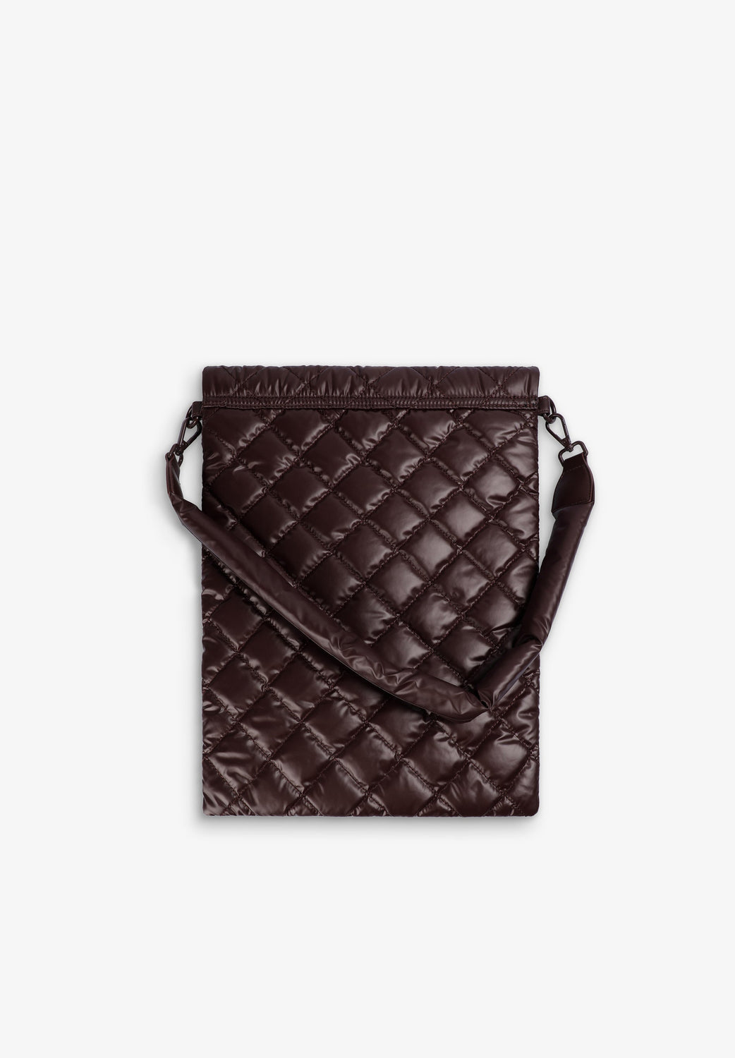 Carteira acolchoada. Alça de mão. Pormenor frontal de skull metalizada.