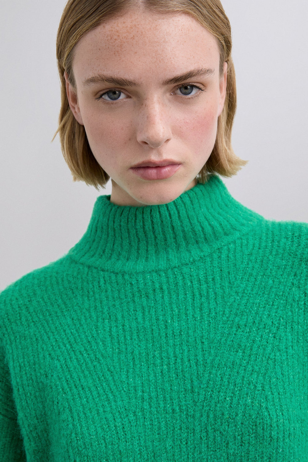 Sweater de design simples com gola alta e mangas compridas. Com um corte a direito (regular fit).