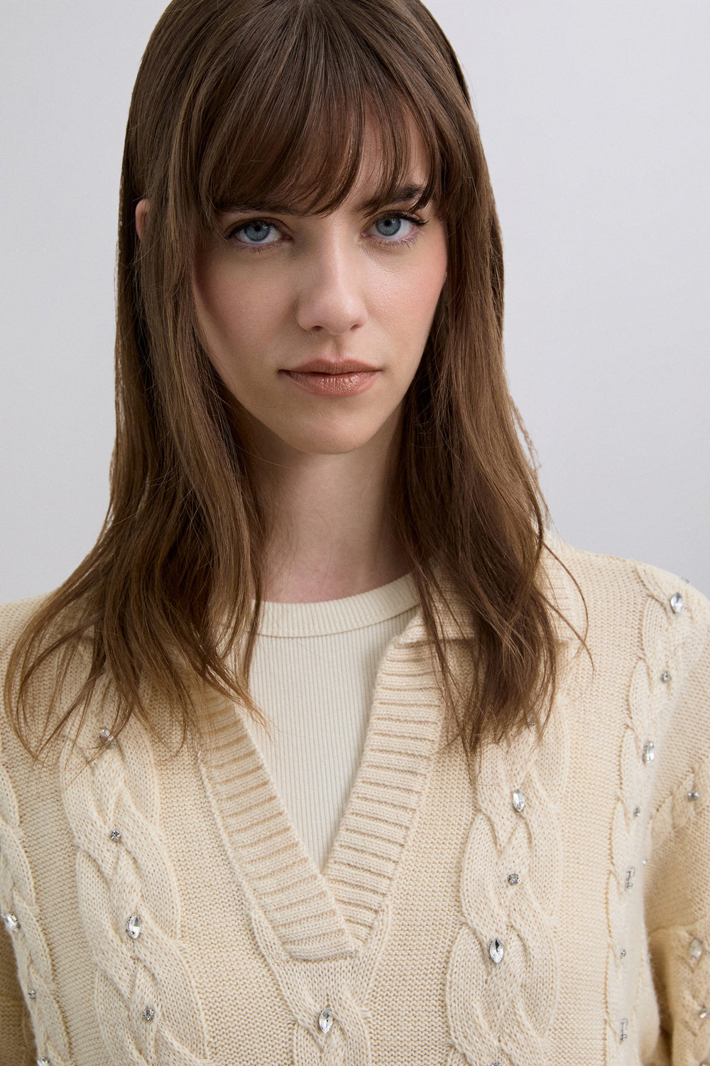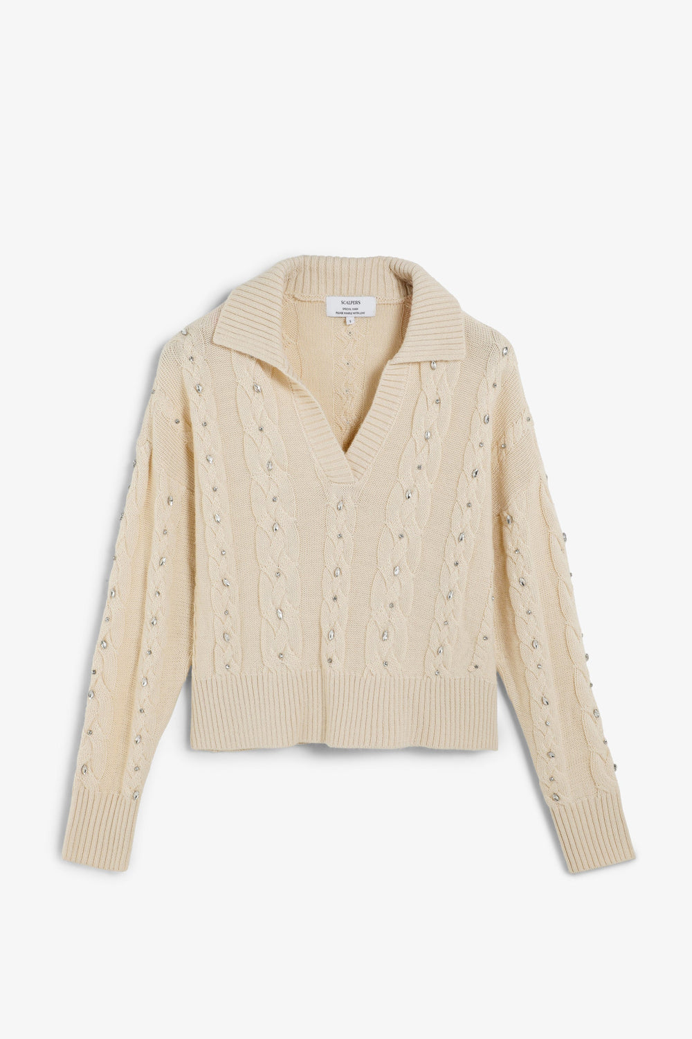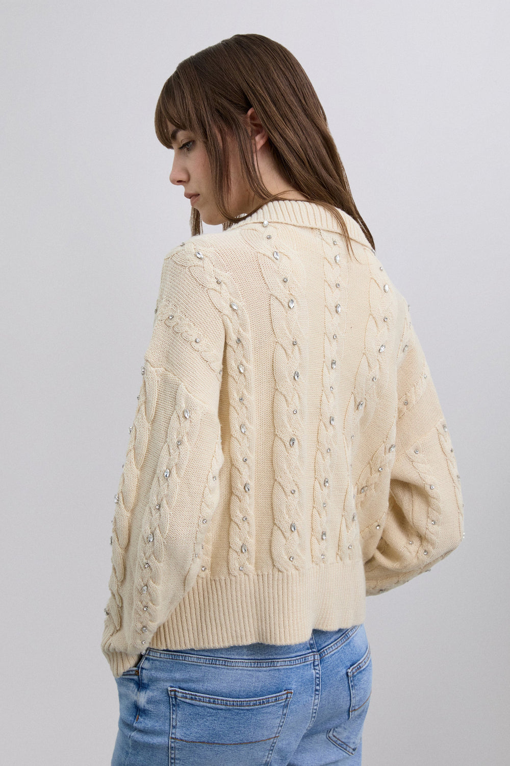 SWEATER CAMISA POLO MALHA DE CABO COM STRASS