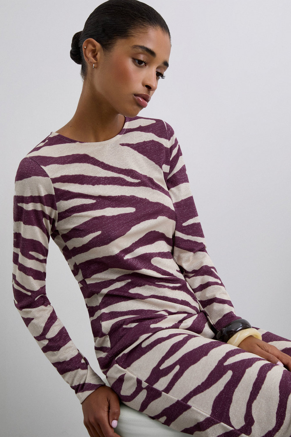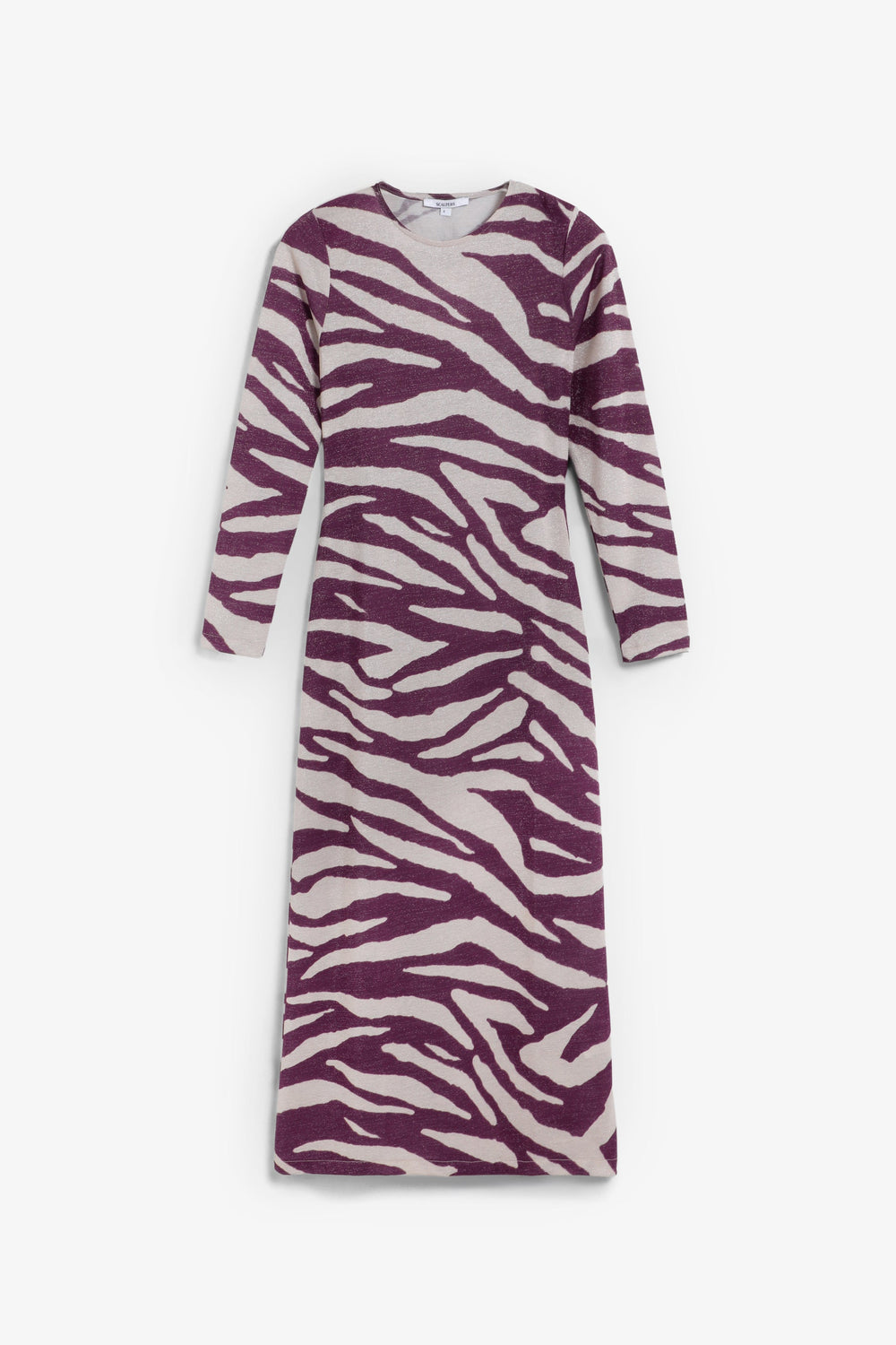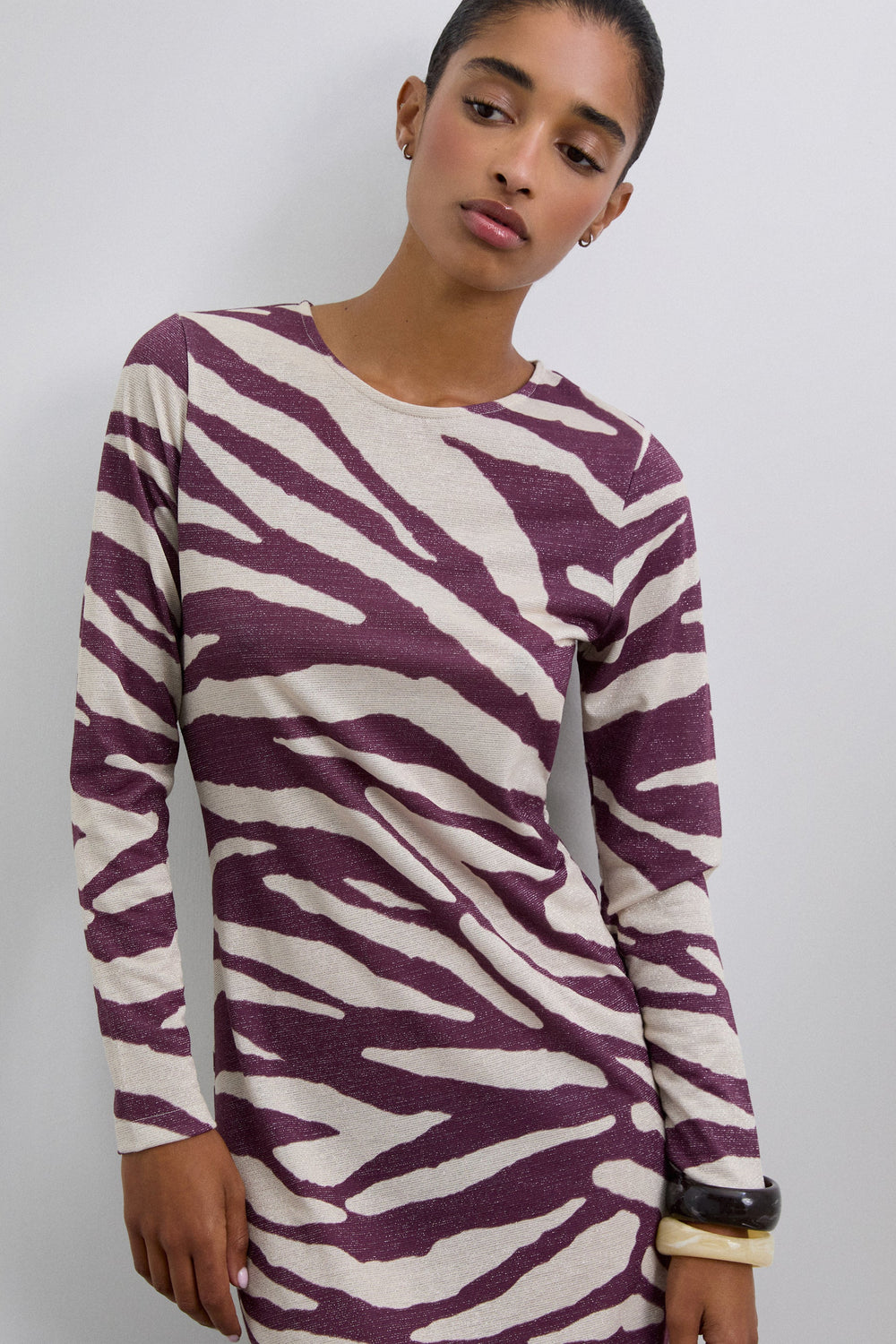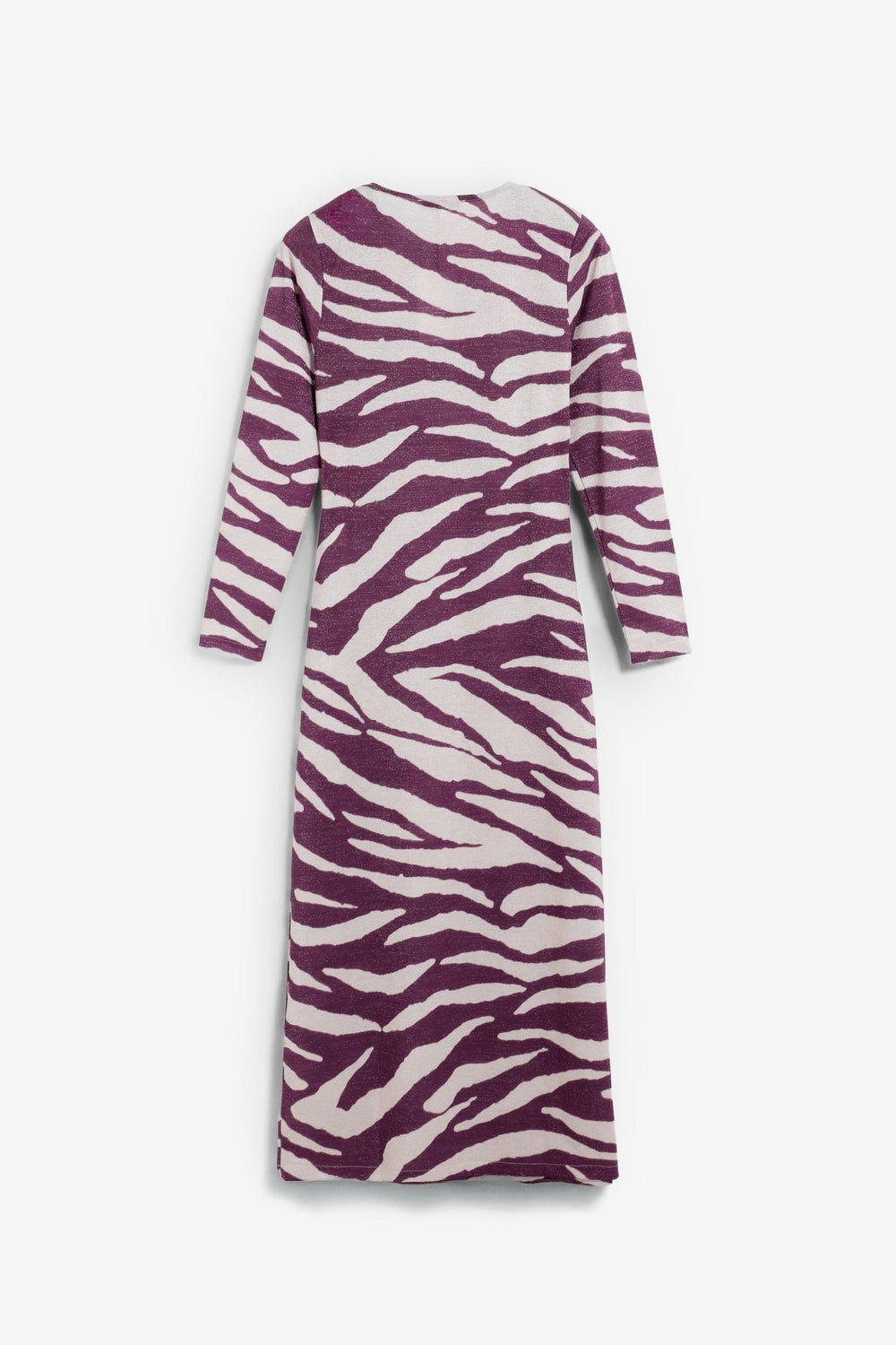 Vestido comprido com manga comprida. Decote redondo. Estampado animal