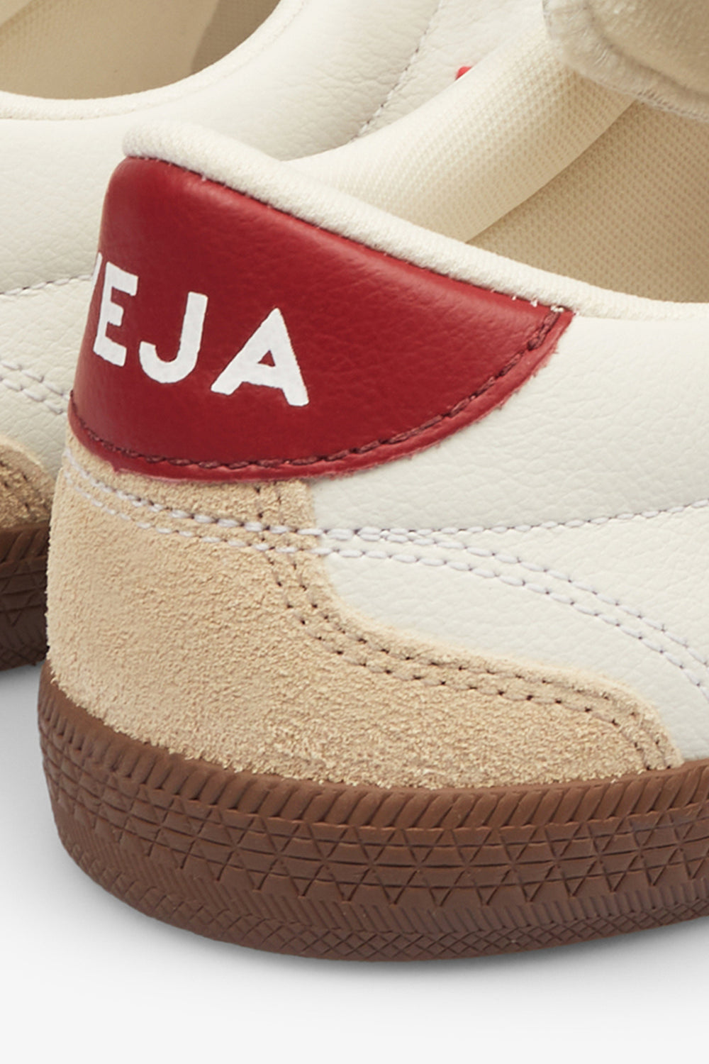 Sapatilhas Veja inspiradas nas de voleibol brasileiras dos anos 70. Confecionadas em tecido de pele O.T. e camurça. Sola exterior recycled, palmilha interior, fecho com atacadores de algodão e pormenor do logótipo da marca.